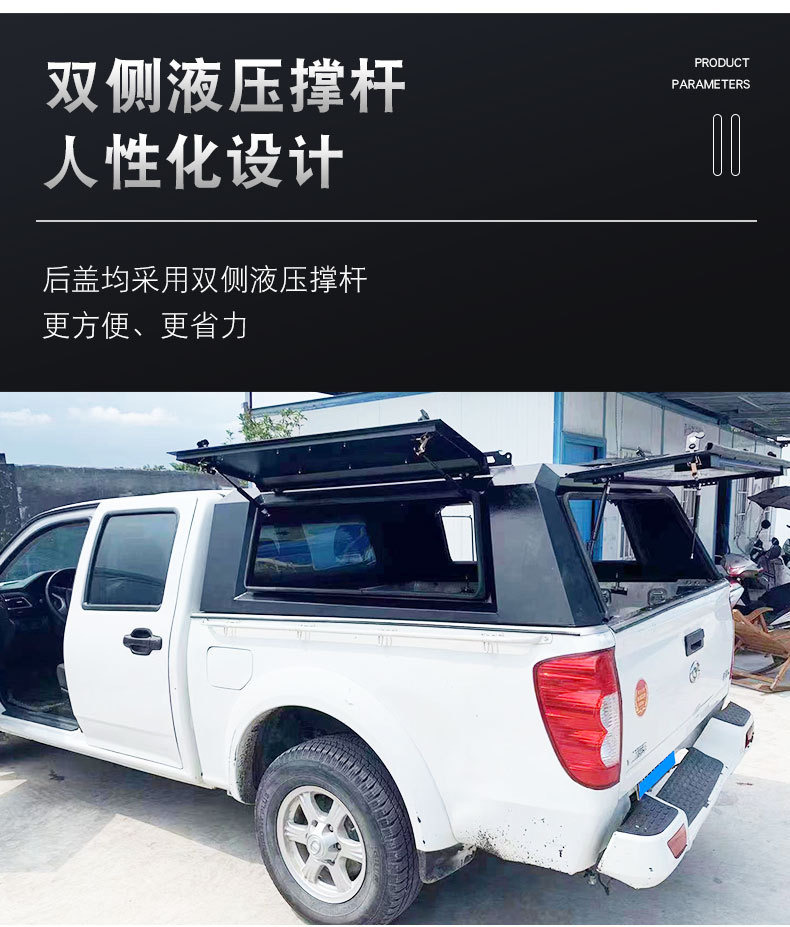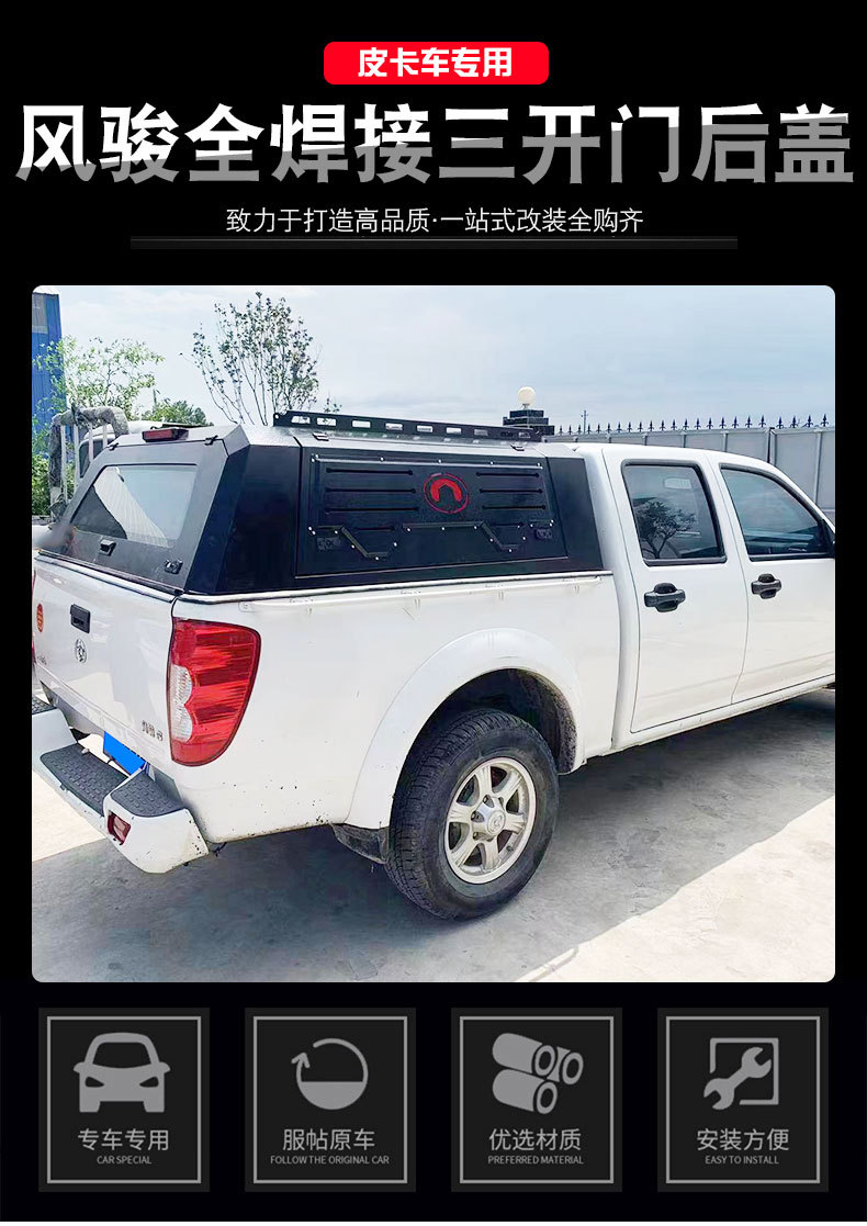 - Three-Door Access System: Equipped with three opening doors to provide convenient access to cargo from both sides and the rear of the pickup bed.