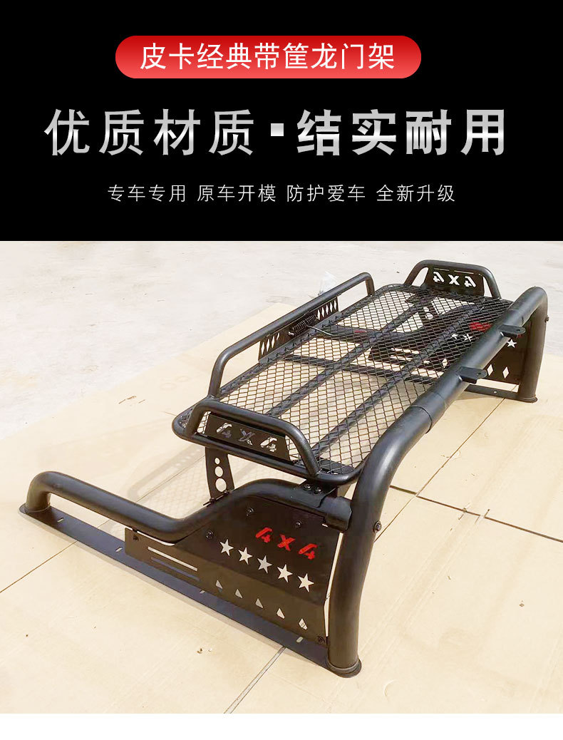 Upgrade your pickup with this heavy-duty steel bed rack and roll bar combo. Features an integrated cargo basket for extra storage. Durable and easy to install.