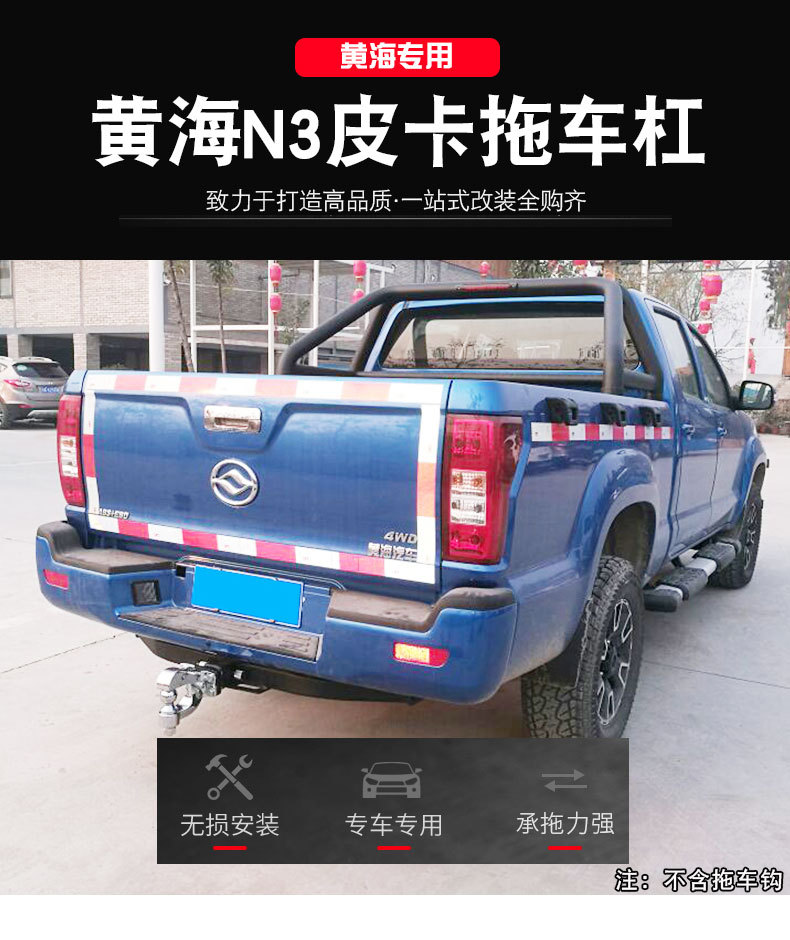 Upgrade your Huanghai N1S N2 N3 pickup with this heavy-duty steel rear bumper tow bar and hitch hook. Engineered for durability and reliable towing capacity.