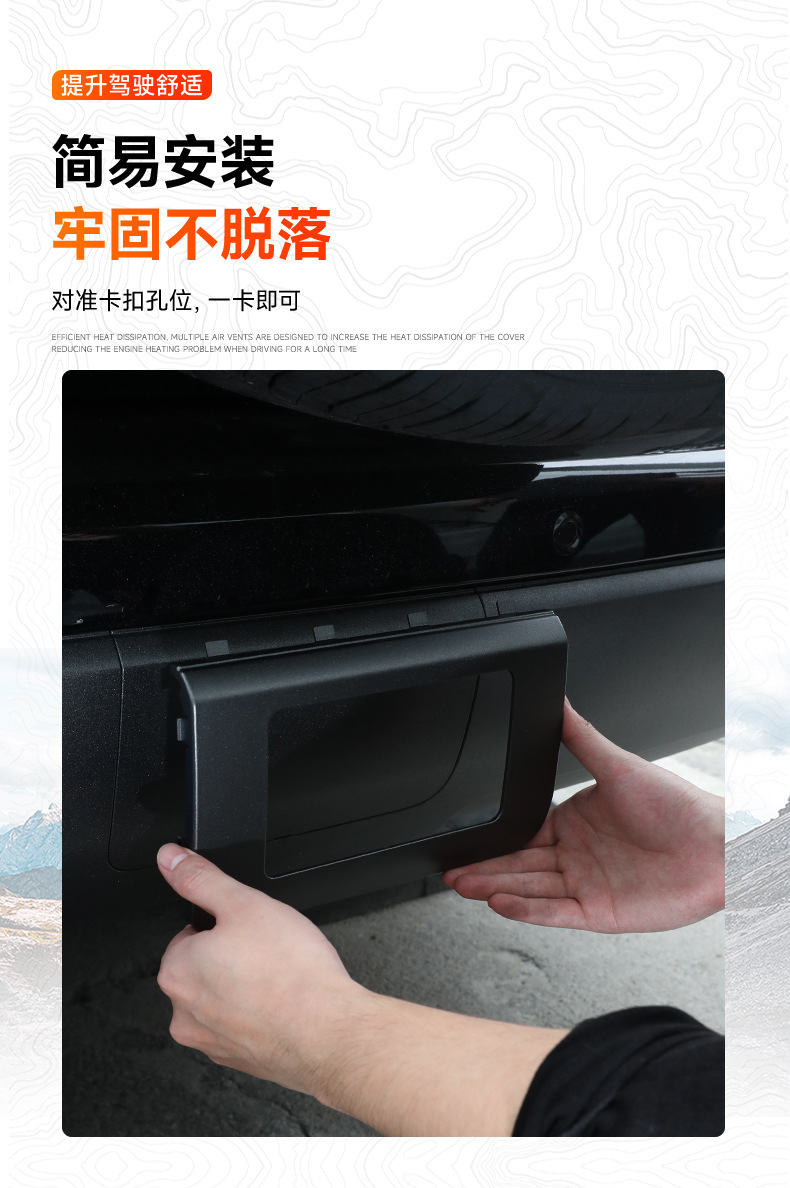 - Integrated protective cover plate guards against mud, debris, and corrosion when the tow hook is not in use.