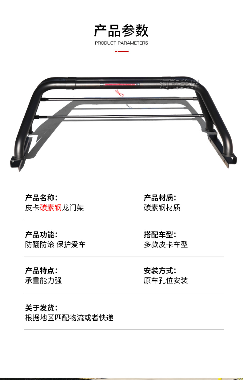 - Enhances vehicle safety by providing an extra layer of roll-over protection for the truck cabin area.