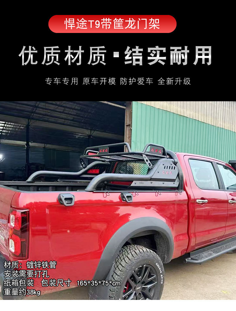 Tags: cargo carrier, hunting truck upgrades, JAC T8 accessories, pickup roll bar, roll cage, roof basket, truck bed rack