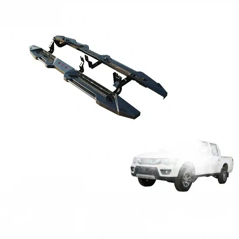 Upgrade your pickup with durable steel side step running boards. Compatible with Hilux Revo, SR5, Vigo, and L200 models for improved safety and chassis protection.