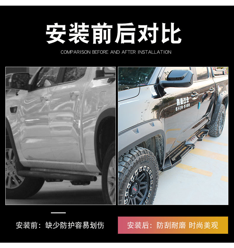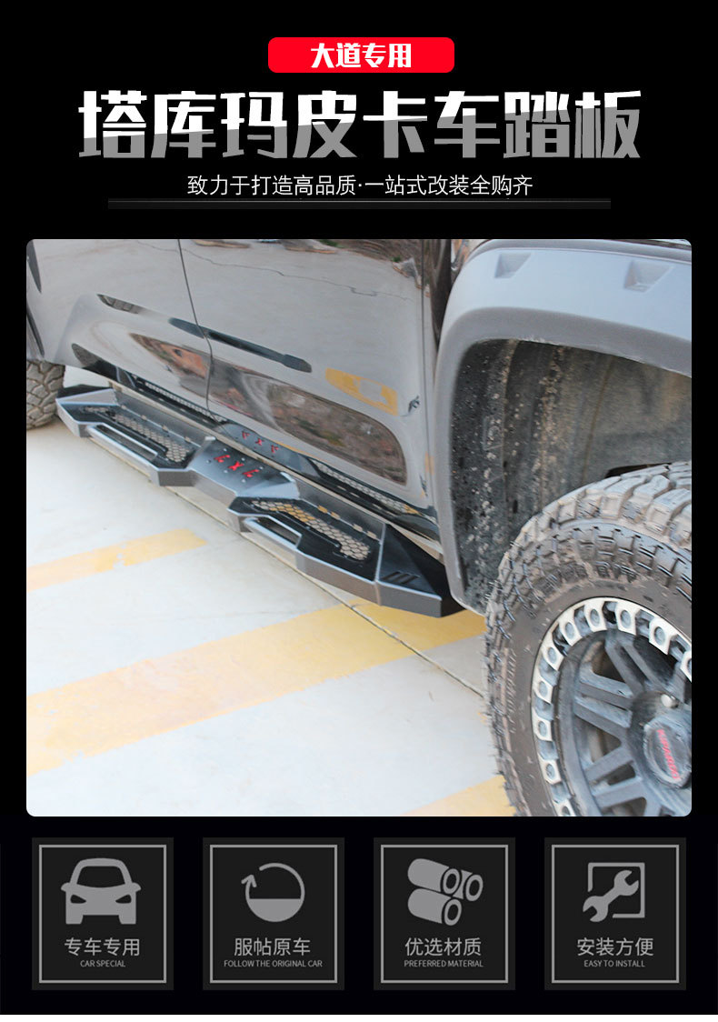 Upgrade your pickup with durable side step running boards. Designed for Tacoma, Navara, and 2023 Ranger. Easy installation, non-slip grip, and heavy-duty steel.