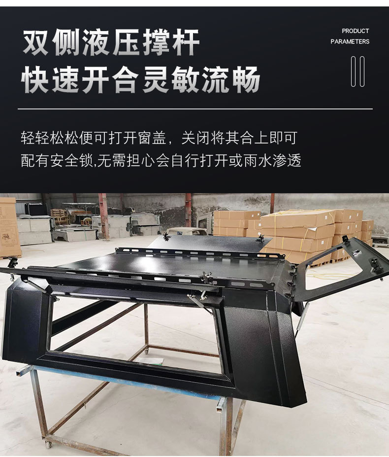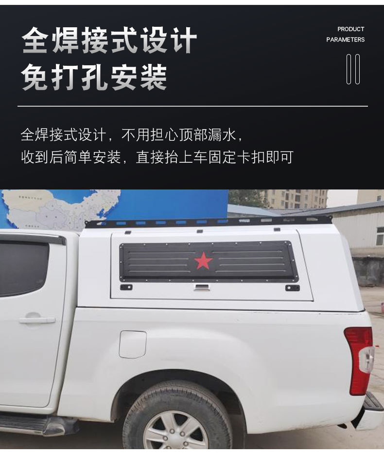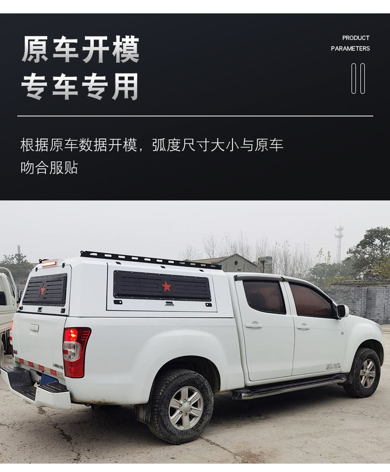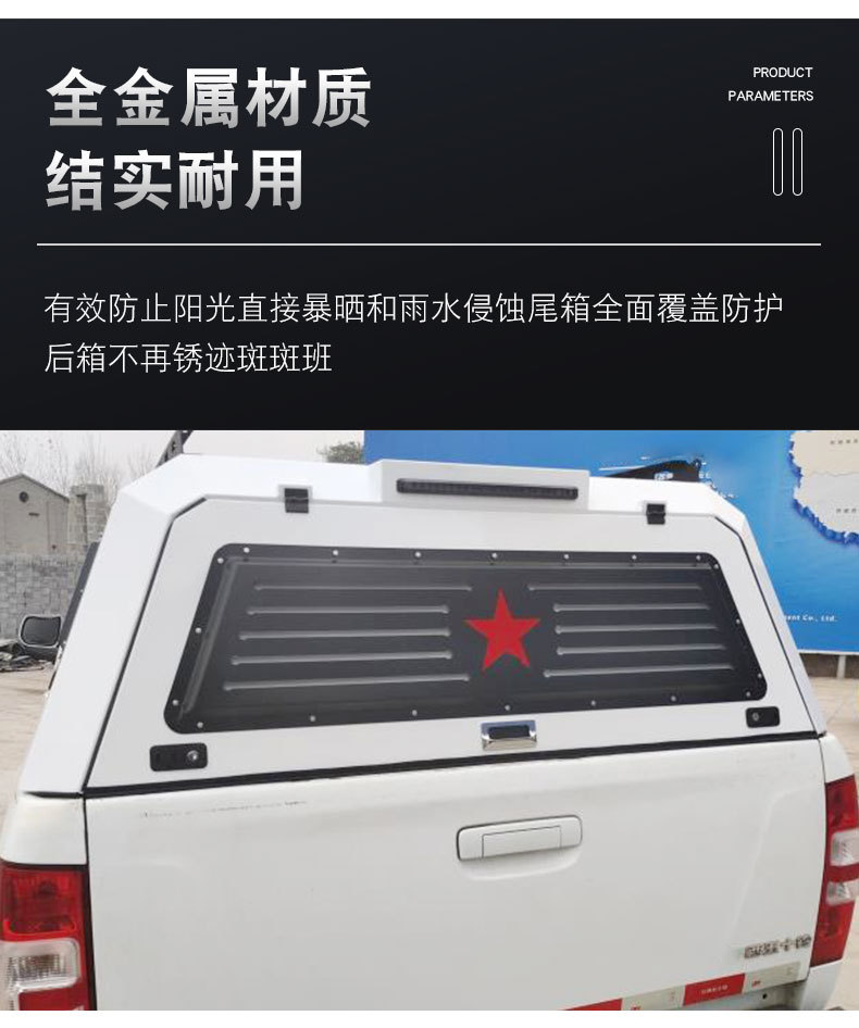 Tags: cargo box cover, pickup camper shell, rear cargo storage, steel truck cap, three-door truck topper, truck bed canopy