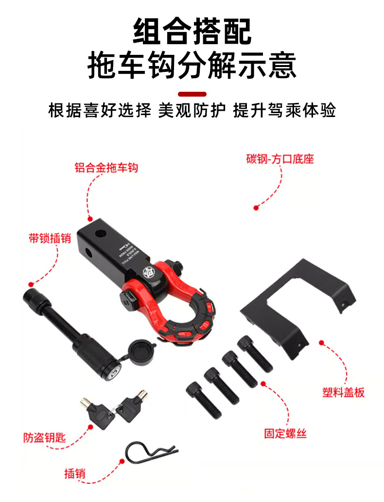 - Integrated U-bolt and square-mouth design allows for versatile compatibility with standard receiver hitches and recovery gear.