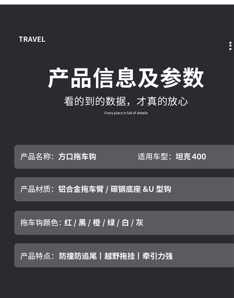 Upgrade your off-road capability with this heavy-duty steel trailer hitch for Tank 400 Hi4-T. Durable, rust-resistant, and designed for secure recovery and towing.