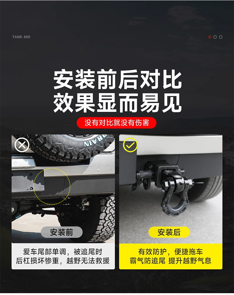 Heavy Duty Steel Trailer Hitch Tow Hook U-Bolt Towing Arm for Tank 400 Hi4-T Off-Road Modification