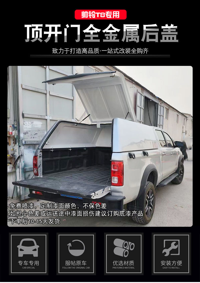 Upgrade your JAC T6 T8 with our durable steel truck bed canopy. Features side and rear opening doors for easy access and weather protection for your cargo.
