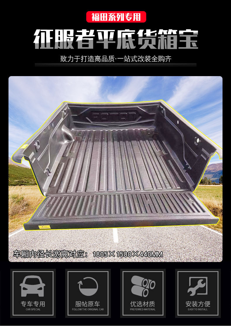 Upgrade your Foton Conqueror 3 with this heavy-duty extended truck bed liner. Durable, anti-slip protection for your flatbed cargo area and wheel arch components.