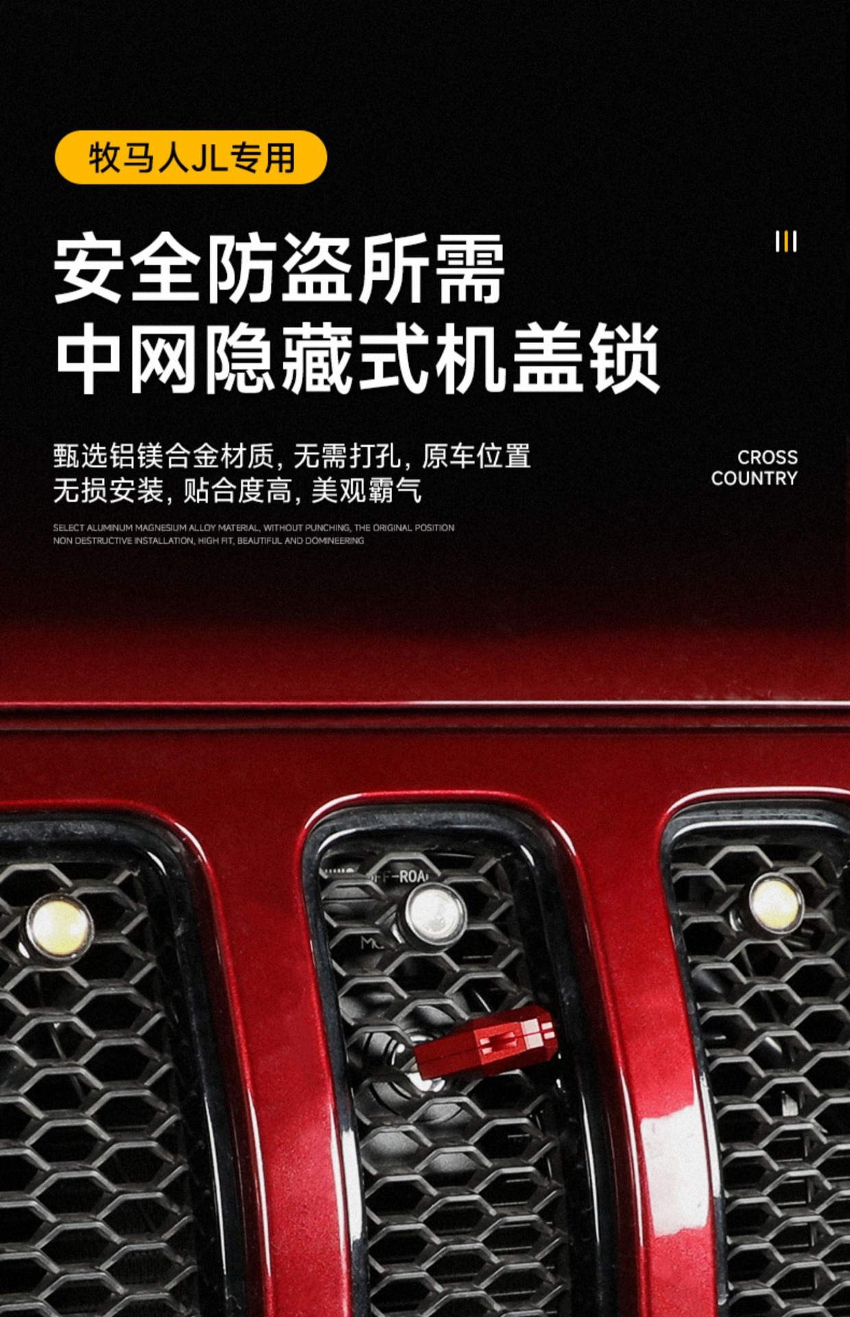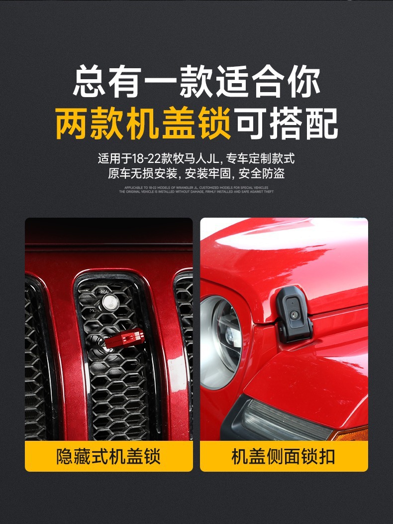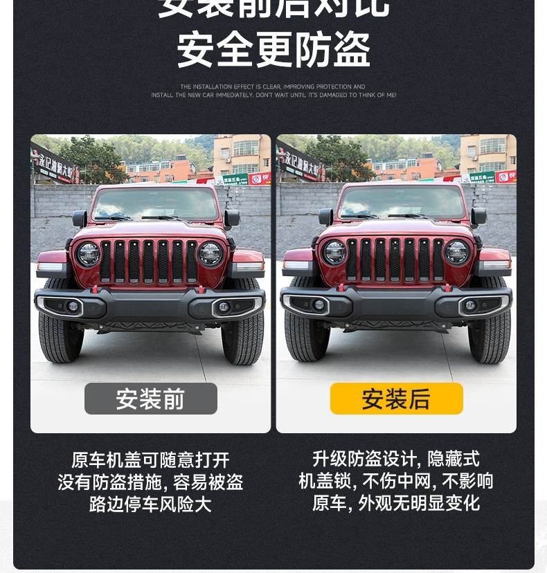 Tags: 4xe exterior mods, anti-theft hood latch, gladiator jt parts, grille lock kit, hidden engine lock, hood lock catch, wrangler jl accessories