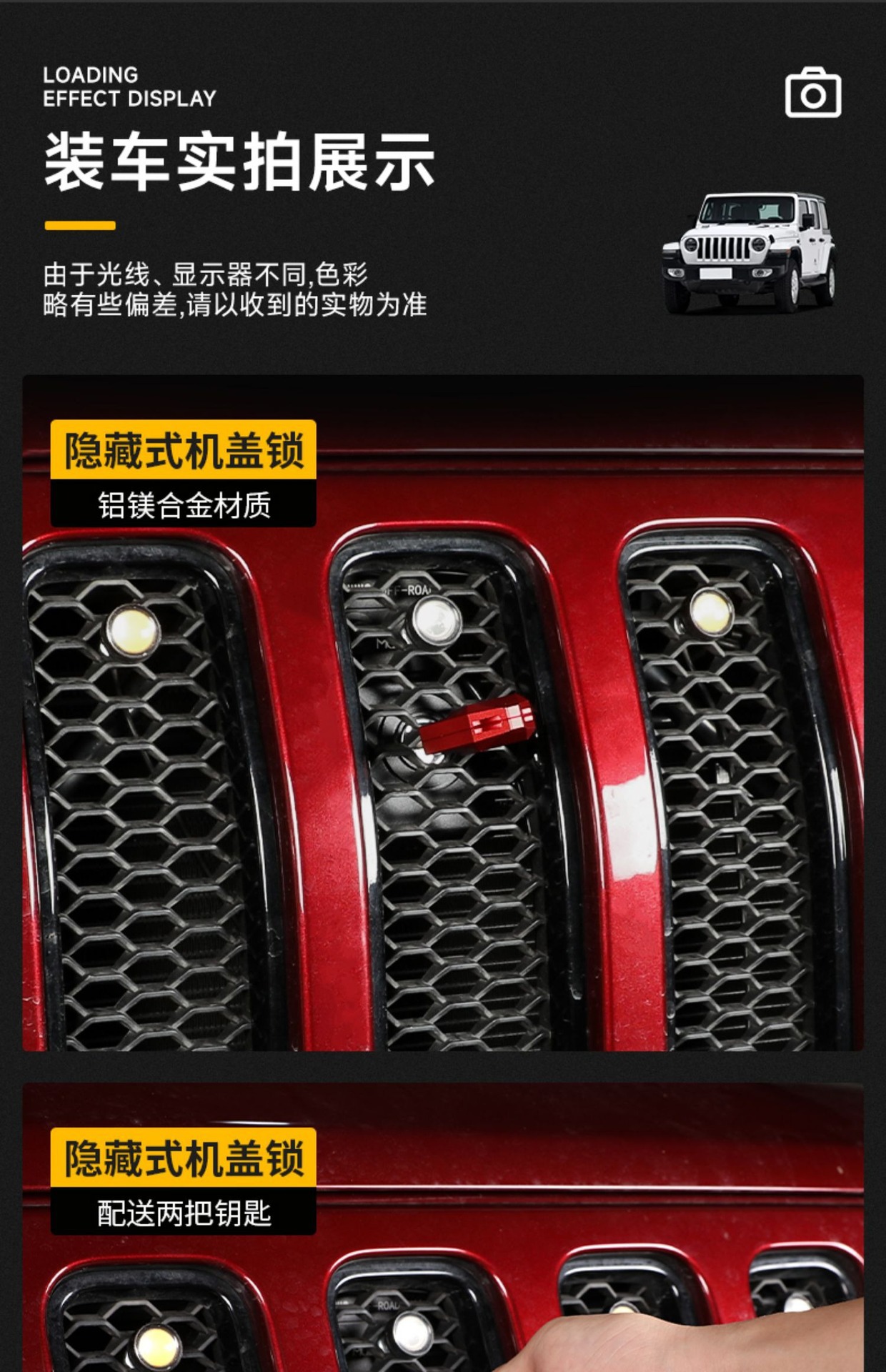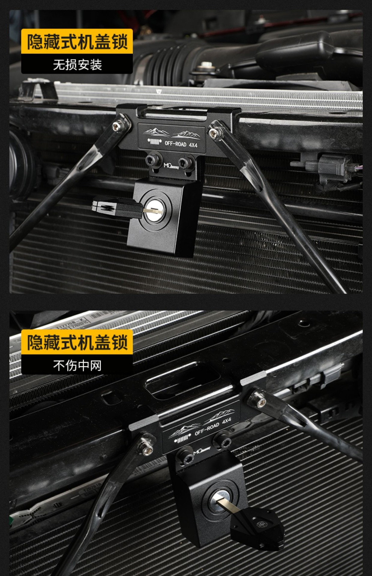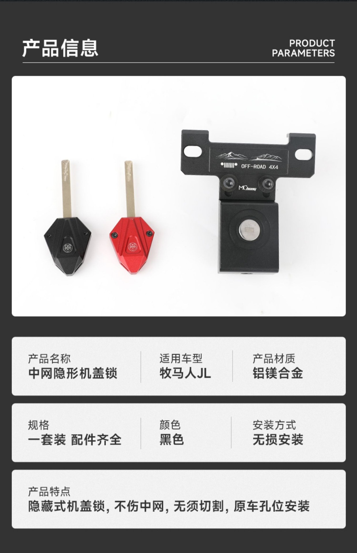 Tags: 4xe exterior mods, anti-theft hood latch, gladiator jt parts, grille lock kit, hidden engine lock, hood lock catch, wrangler jl accessories