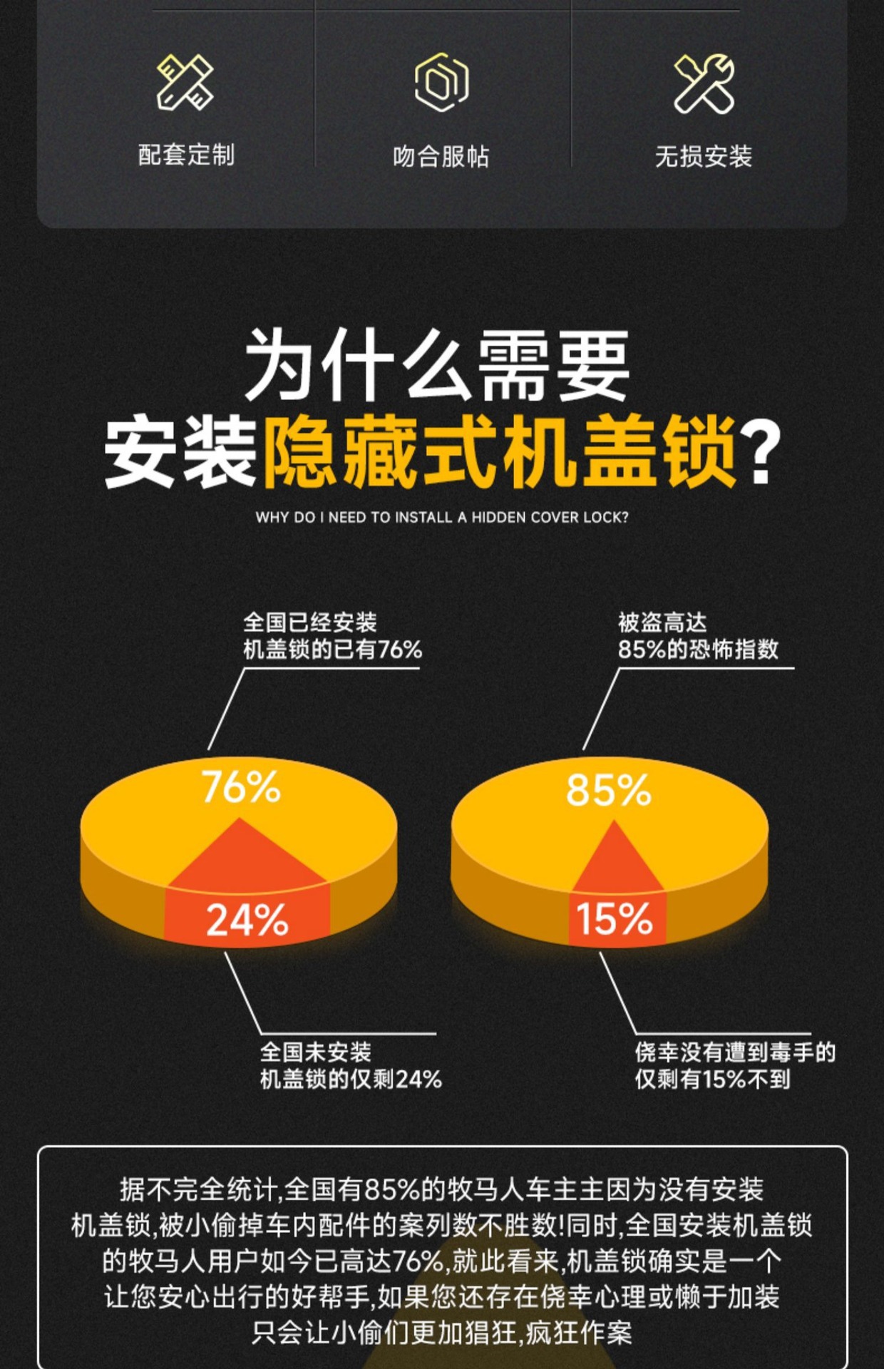 - Prevents hood flutter at high speeds while maintaining a clean aesthetic by hiding the locking mechanism from view.