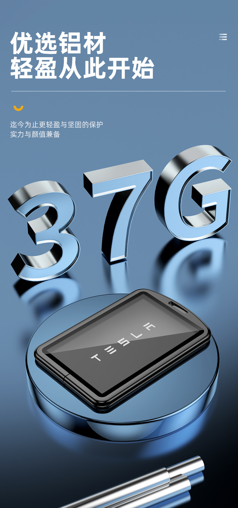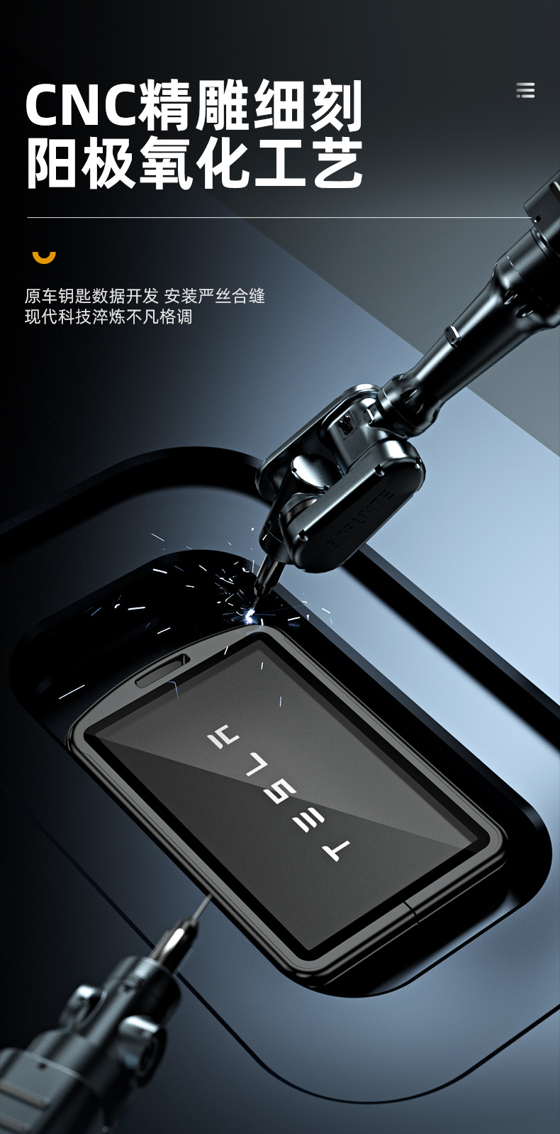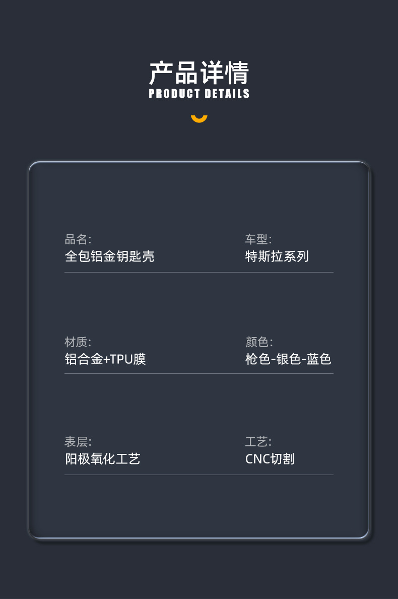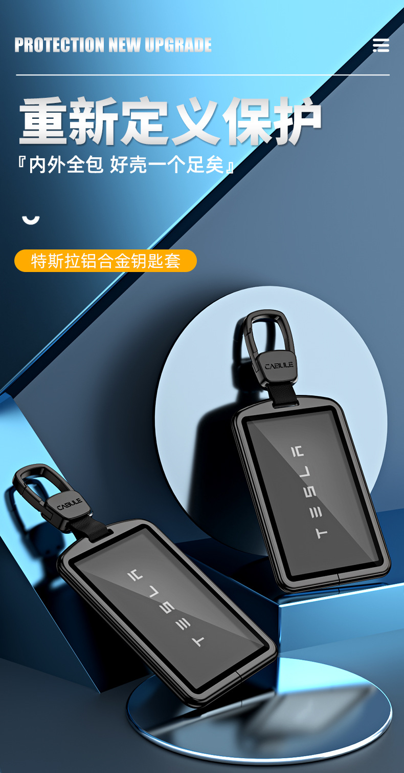 Upgrade your driving experience with this durable aluminum alloy key fob cover. Designed for Tesla Model Series, it offers 360-degree protection and a sleek look.