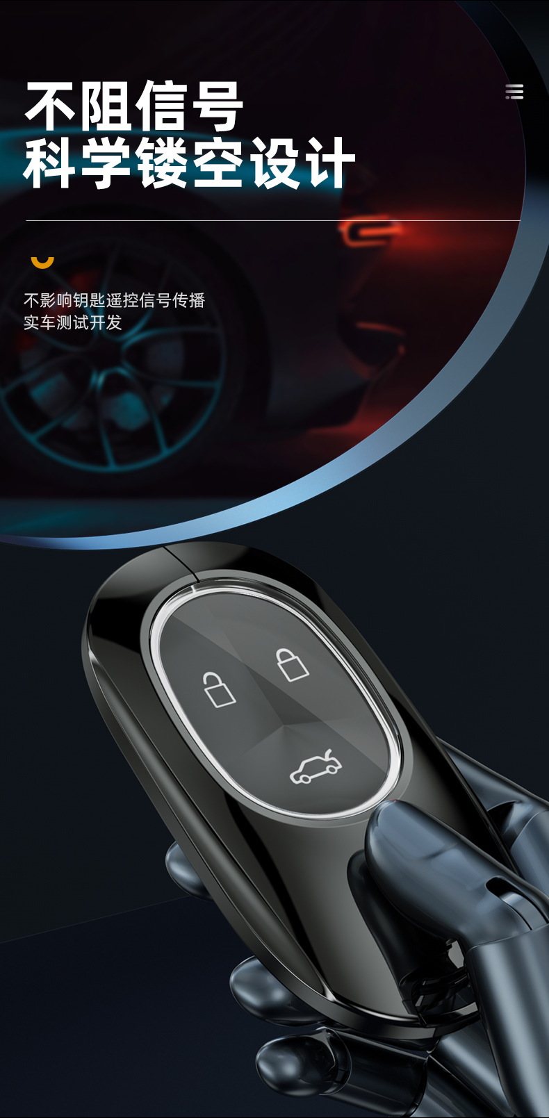 - Slim and ergonomic design ensures zero signal interference for keyless entry and start functions.