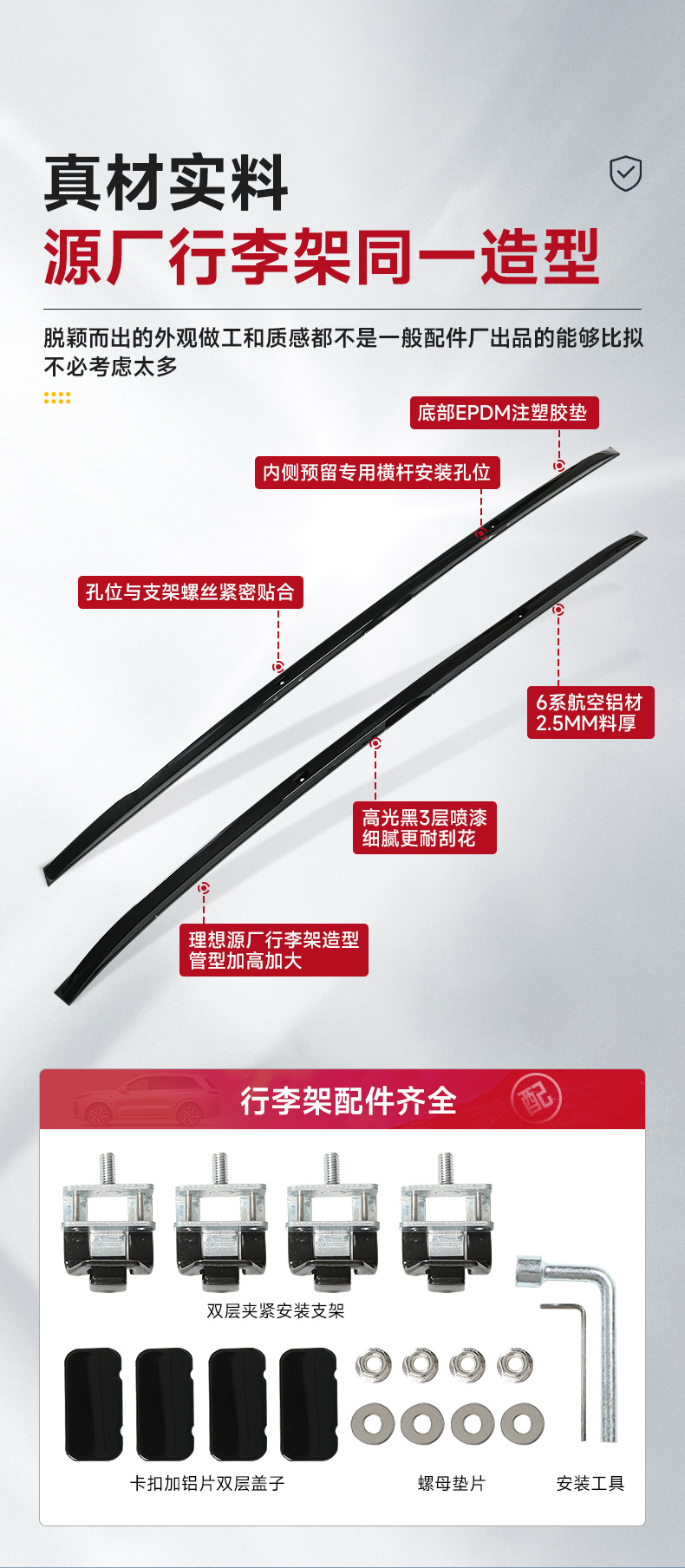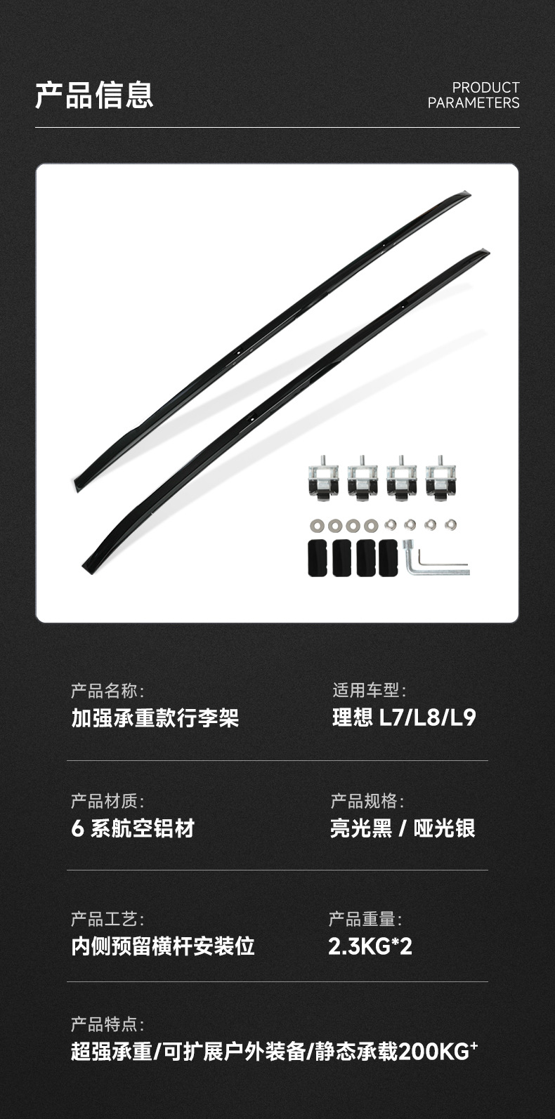 Ideal L7/L8/L9 special luggage rack original aluminum alloy roof rack cross bar modification accessories exterior decoration
