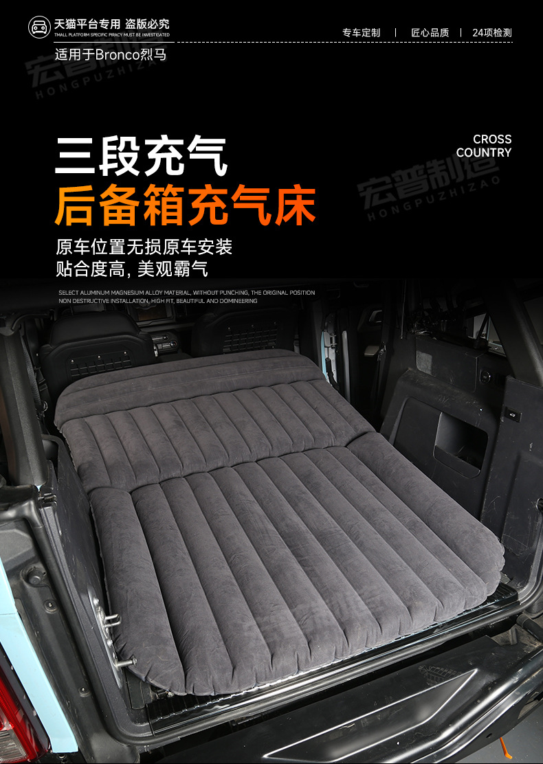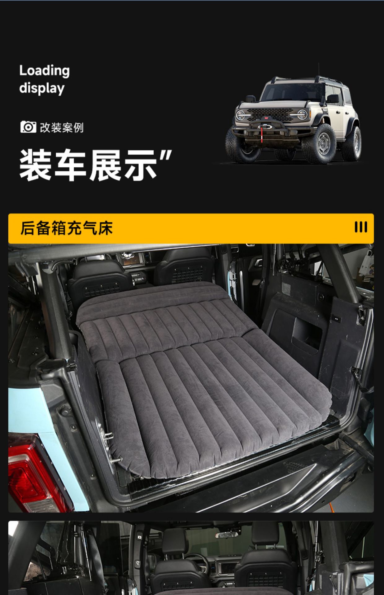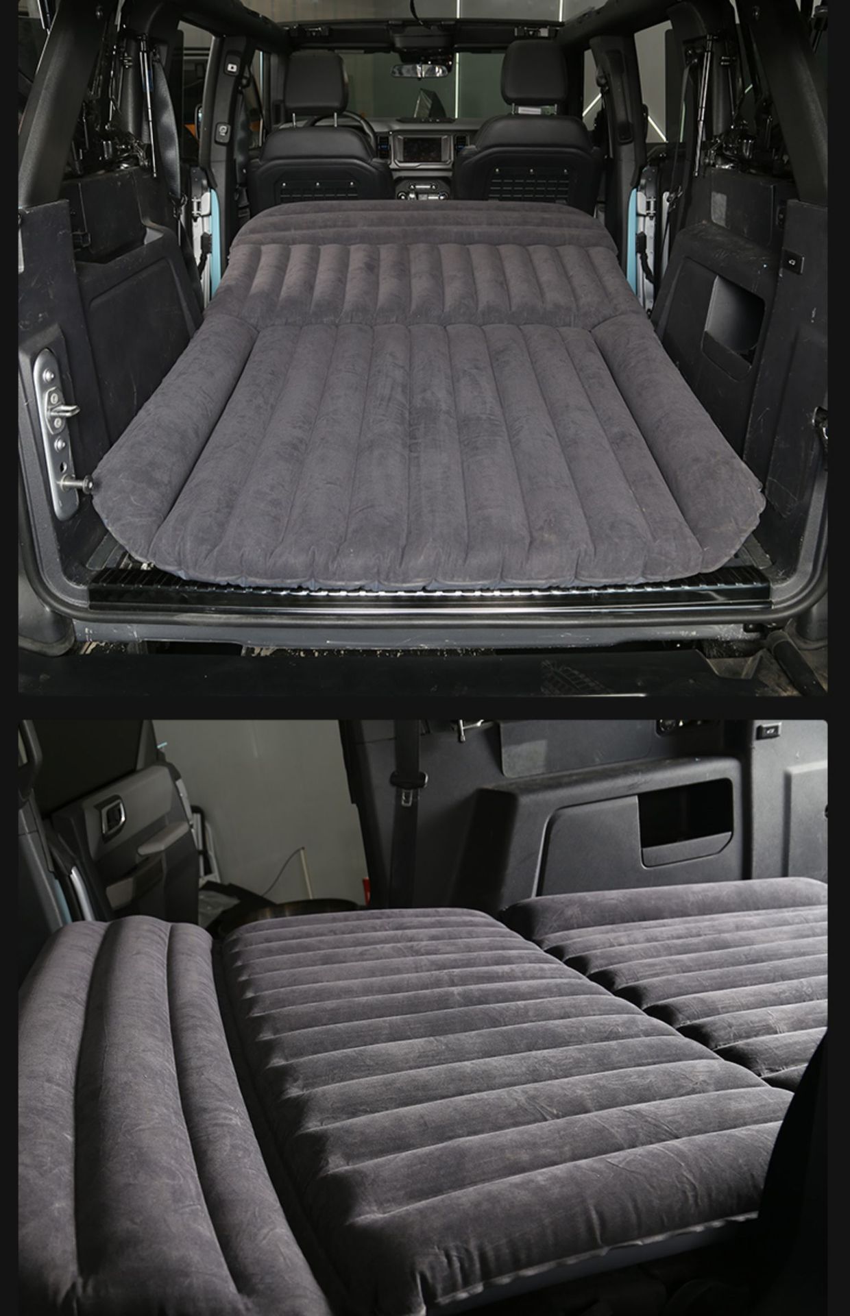 Tags: camping sleeping pad, car mattress, Ford Bronco bed, inflatable travel mattress, portable car bed, SUV back seat bed, trunk air bed