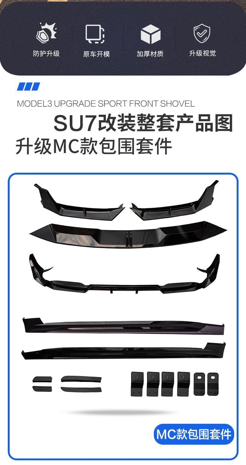 Injection Molded Exterior Body Kit Accessories Integrated Front Lip Splitter Side Skirts and Rear Diffuser Spoiler Compatible with Xiaomi SU7