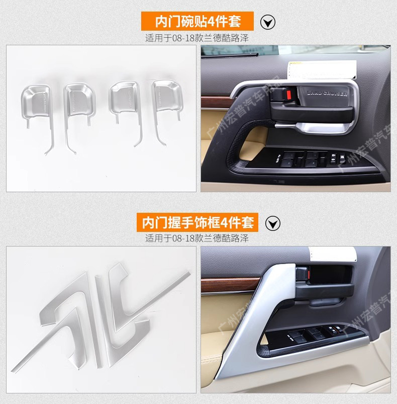 Upgrade your Toyota Land Cruiser 2008-2021 with this premium chrome-plated interior door handle and bowl trim kit. Durable, scratch-resistant, and easy to install.
