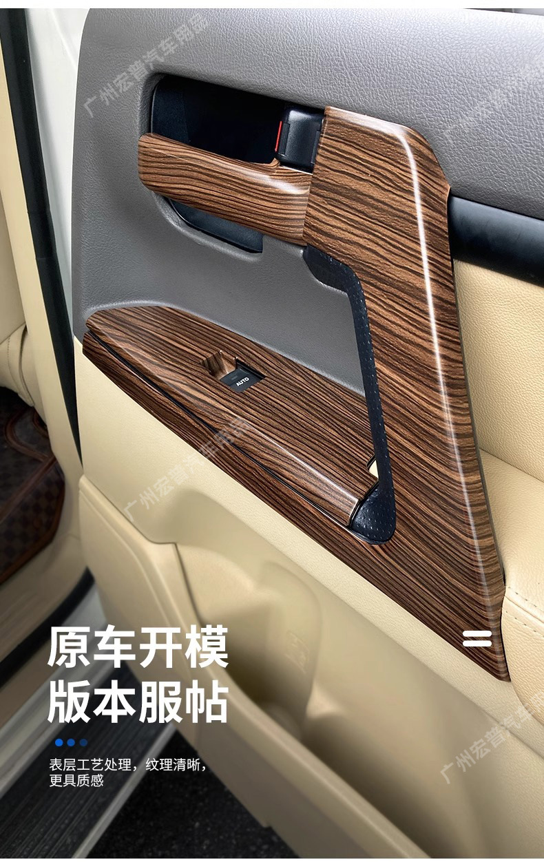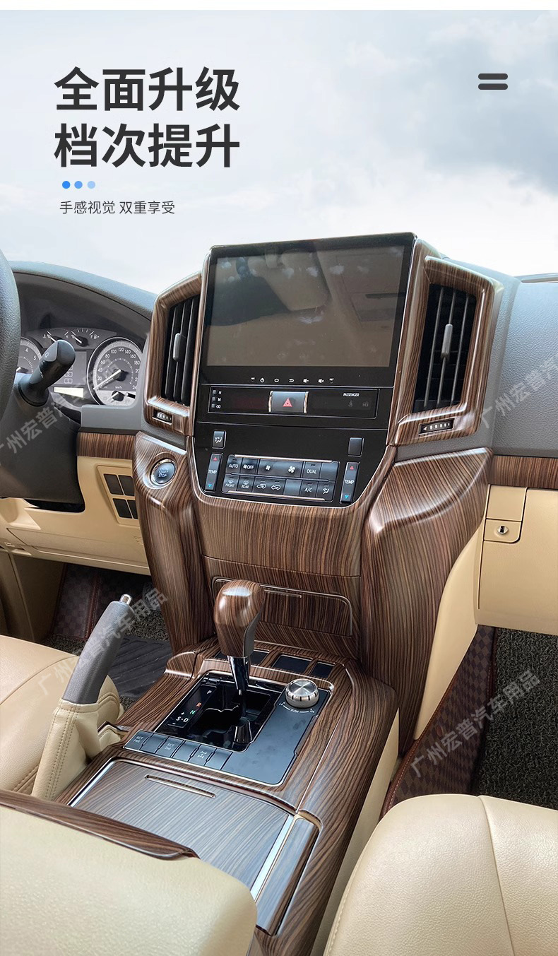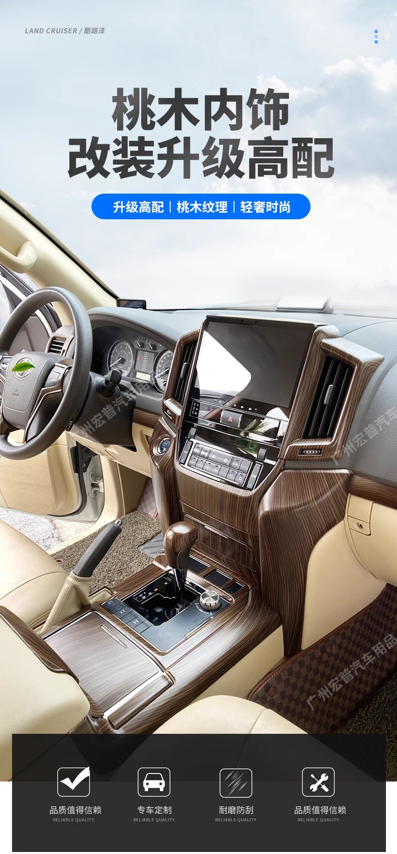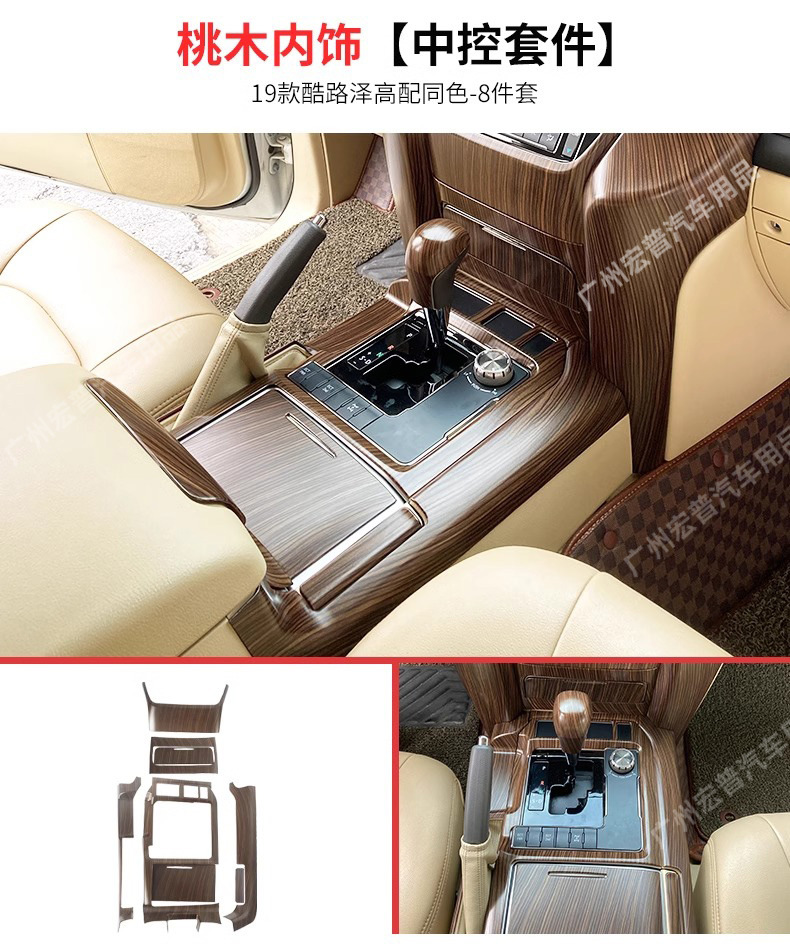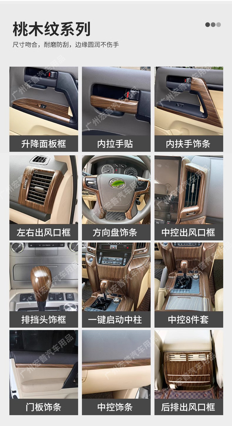 Tags: automotive interior styling, car center console sticker, door handle cover trim, Land Cruiser interior trim, LC200 wood grain decor, wood veneer decals