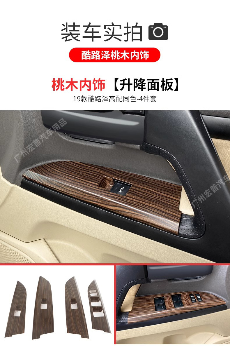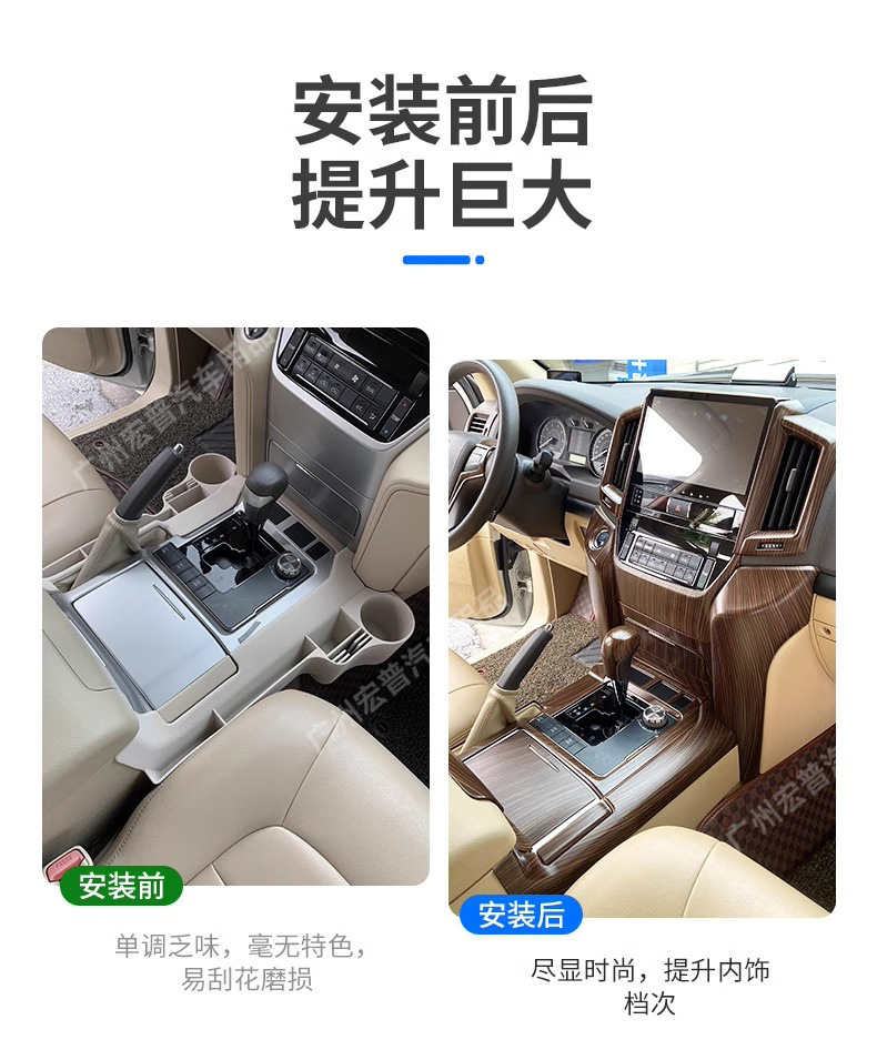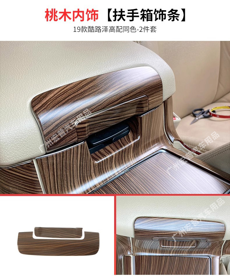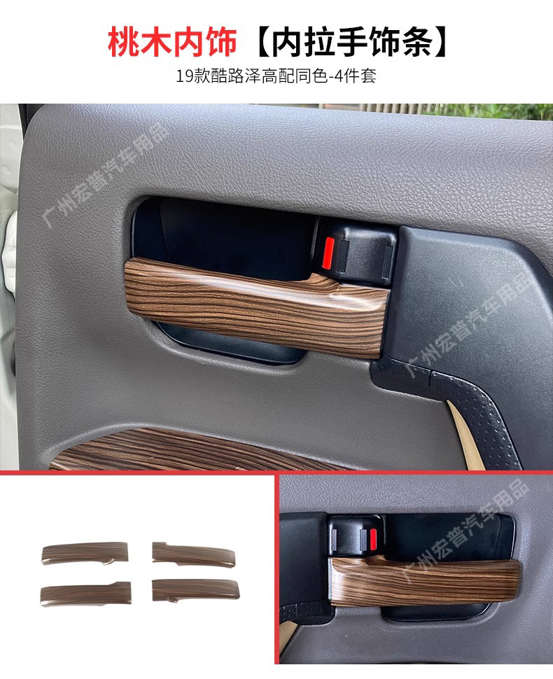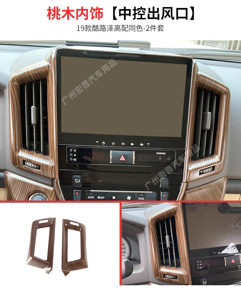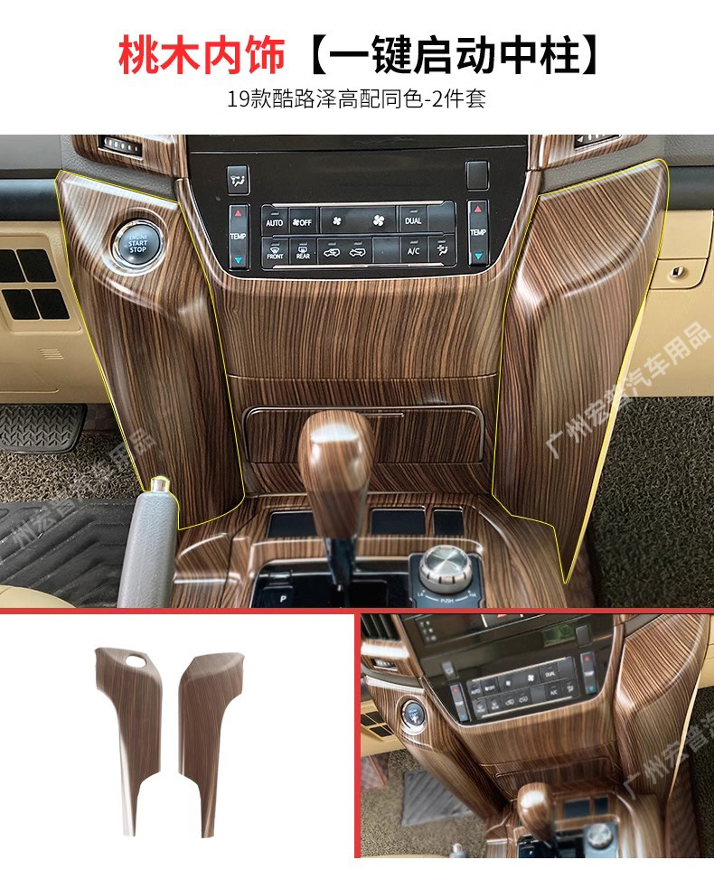 Tags: automotive interior styling, car center console sticker, door handle cover trim, Land Cruiser interior trim, LC200 wood grain decor, wood veneer decals