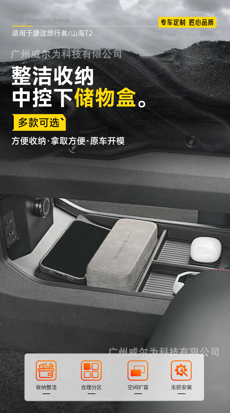 Jietu Traveler Armrest Box Storage Box Shanhai T2 Central Control Partition Storage Box Finishing Storage Box Interior Trim Modification