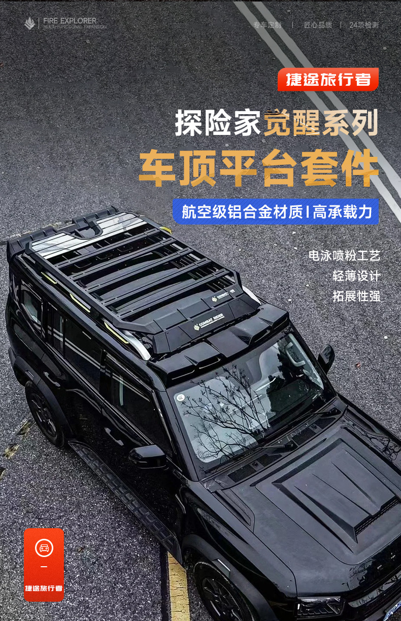 Jietu Traveler Roof Rack Frame Shanhai T2 Modified Folding Ladder Expansion Platform Side Tent Schoolbag