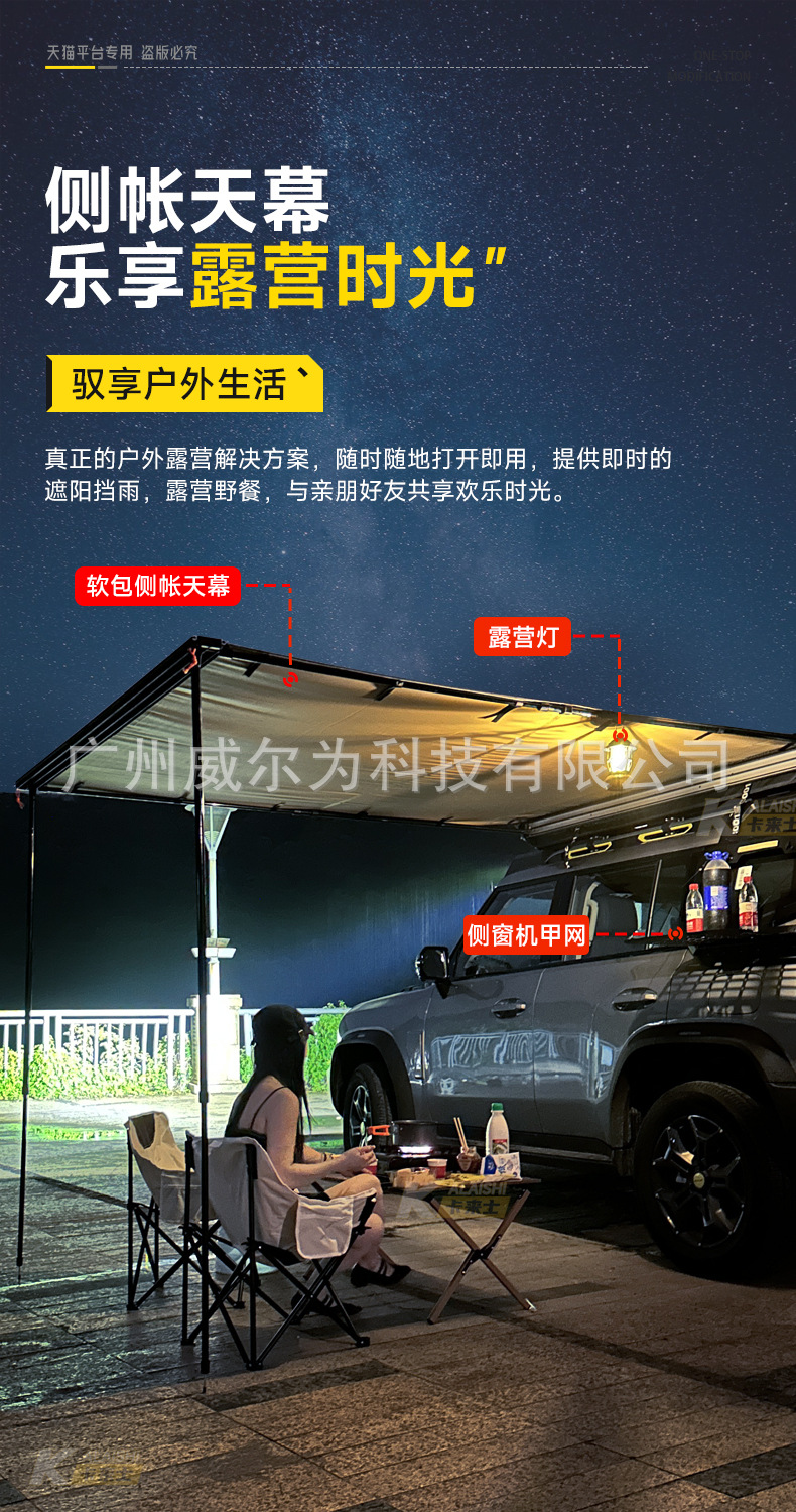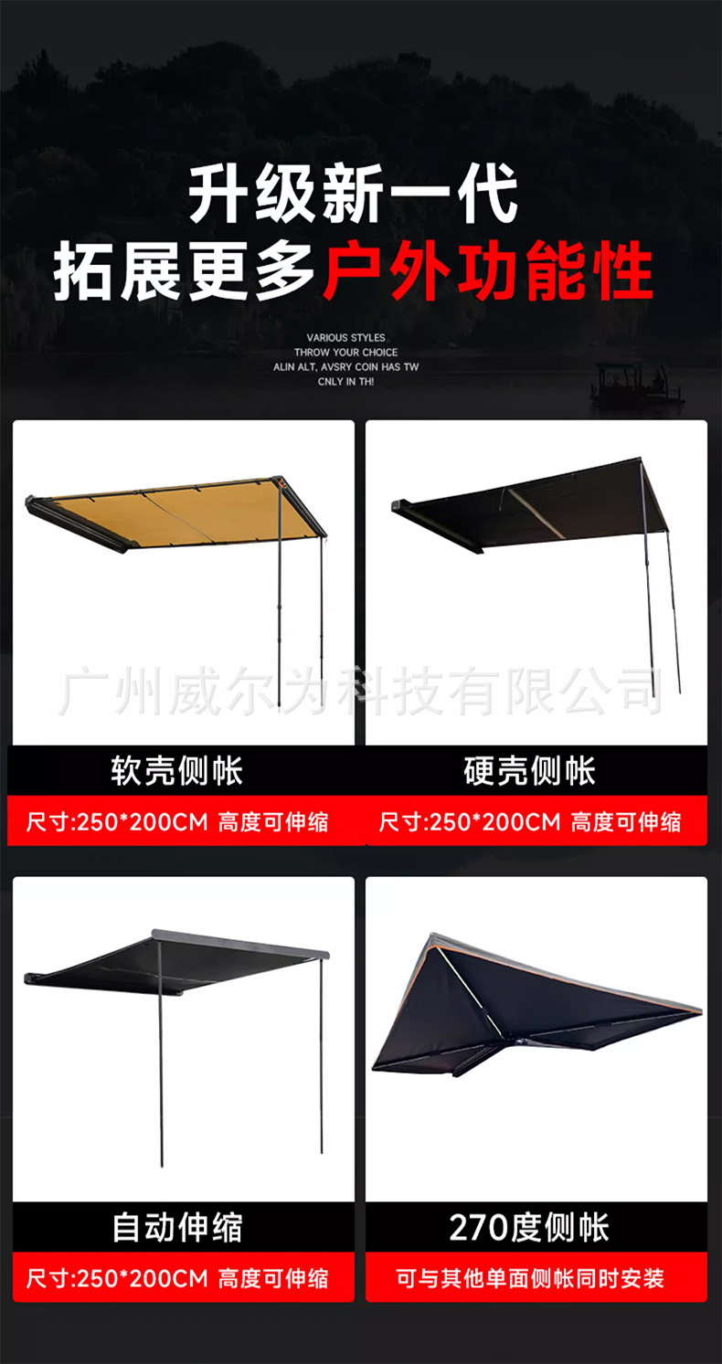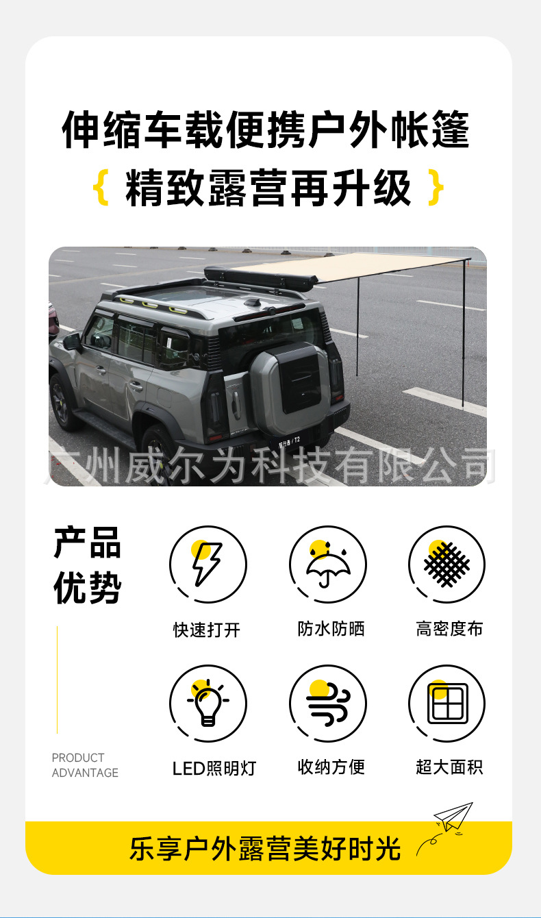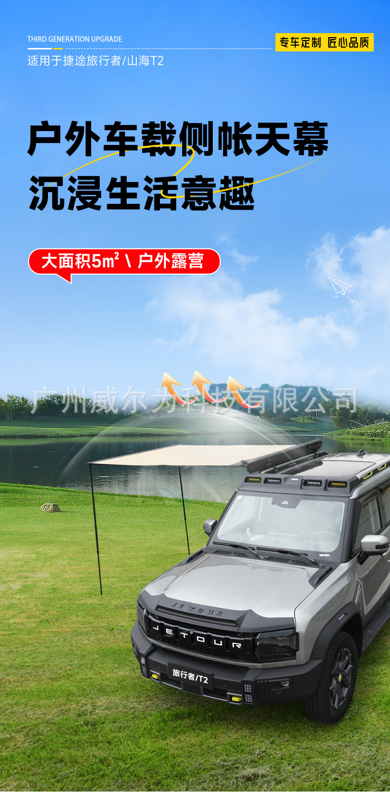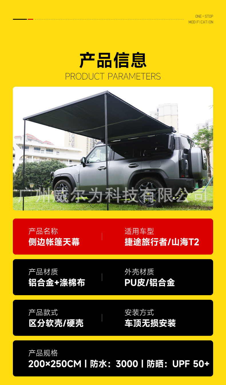 Jietu Traveler Shanhai T2 Side Tent Roof Rack Sunscreen Rainproof Car Hard Shell Side Account Awning Canopy