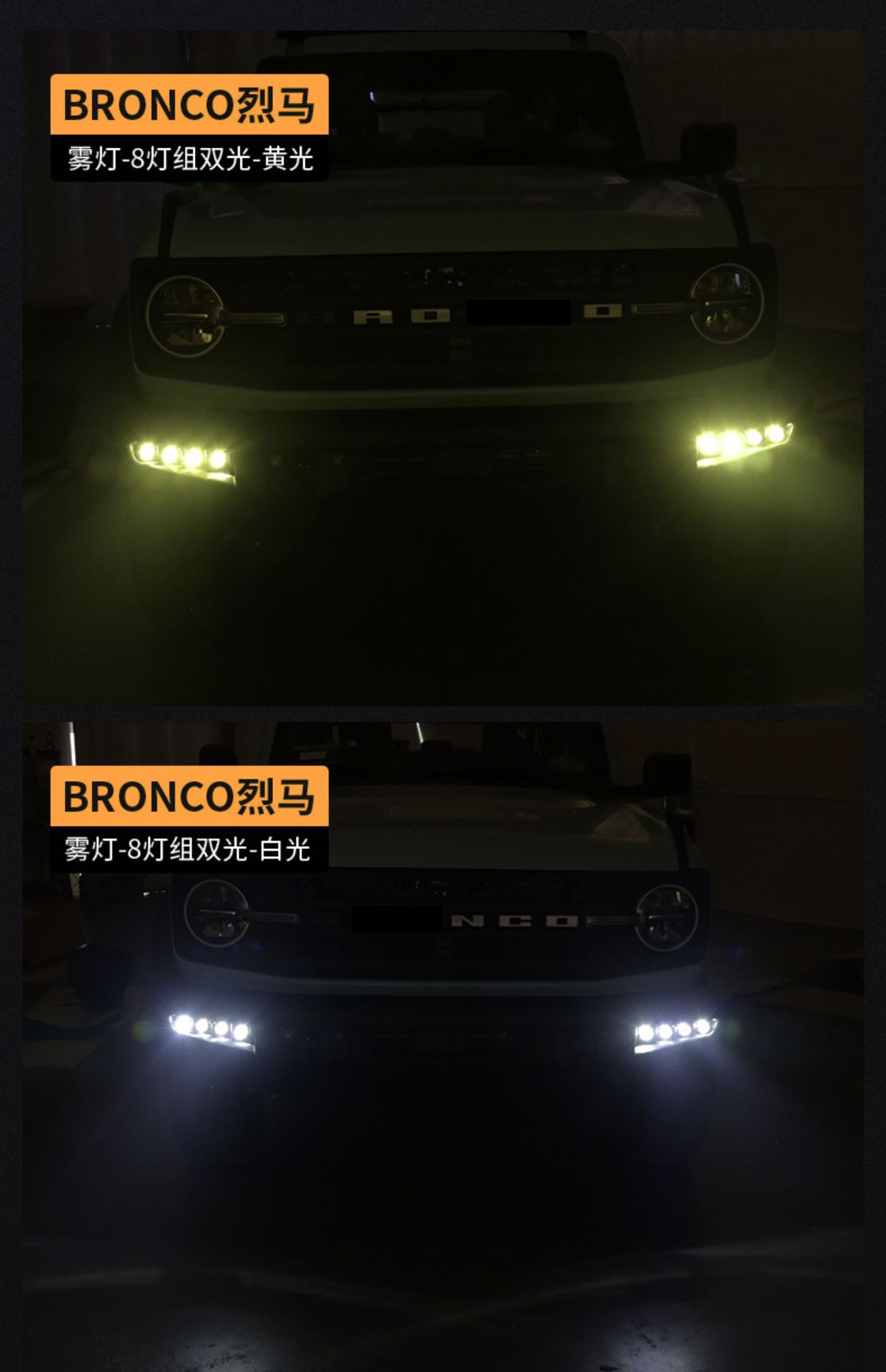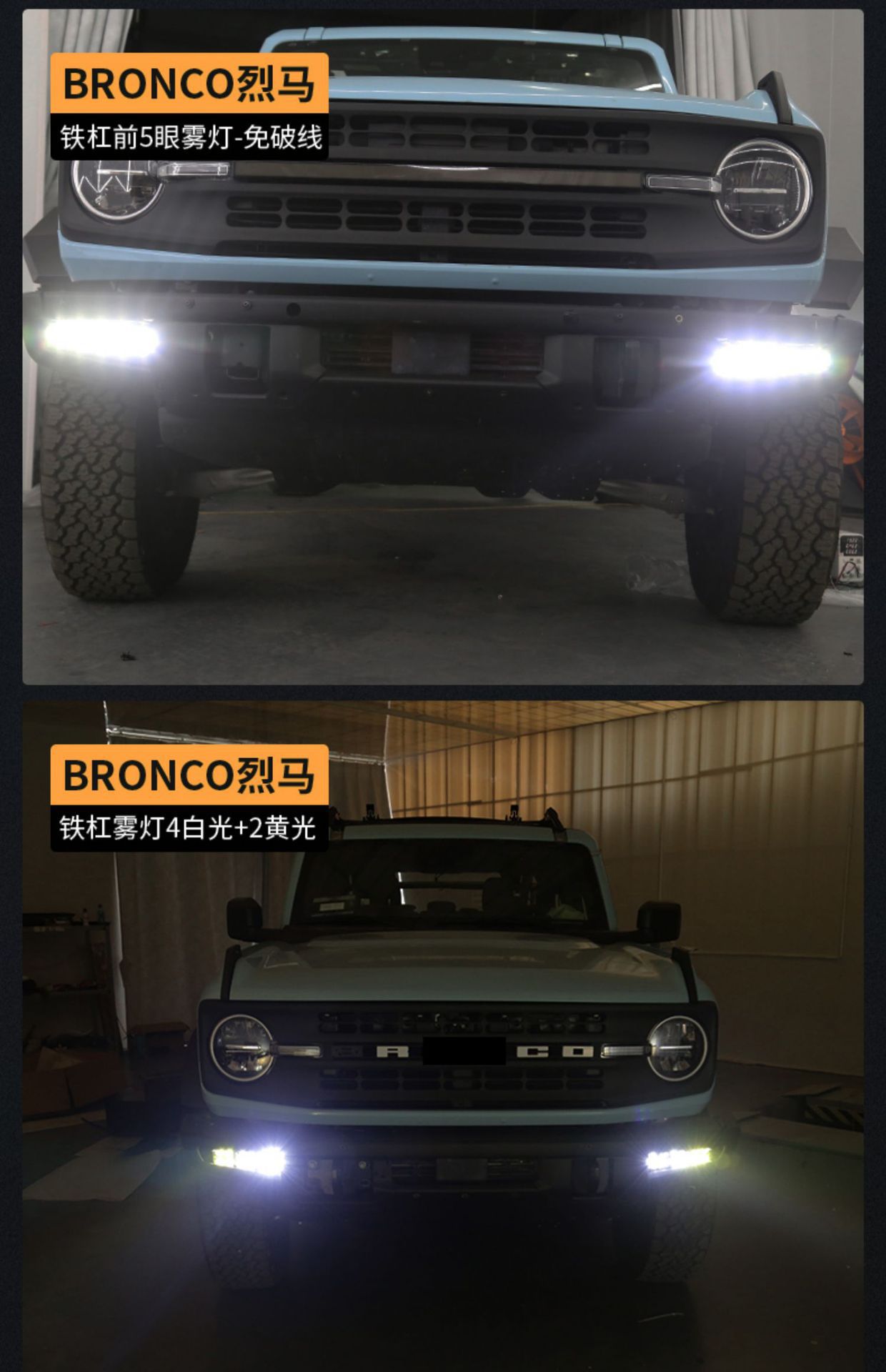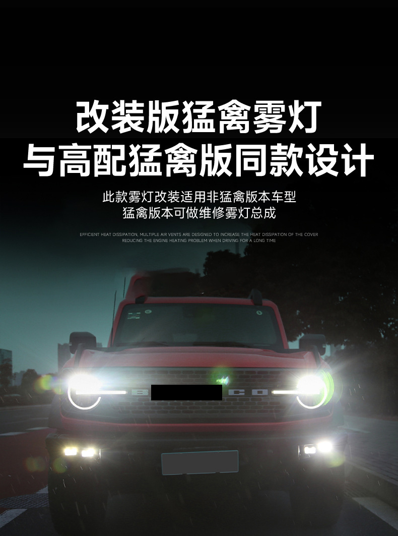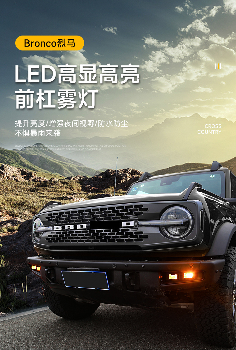 Tags: automotive warning lights, Bronco lighting upgrade, daytime running light kit, front bumper fog lights, LED DRL assembly, raptor style lights, turn signal lamps