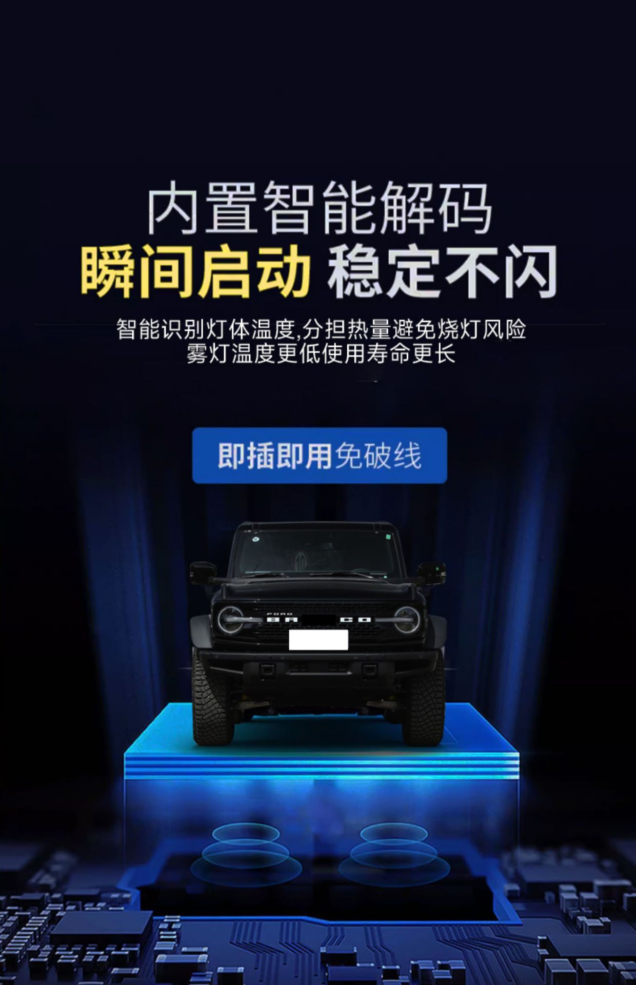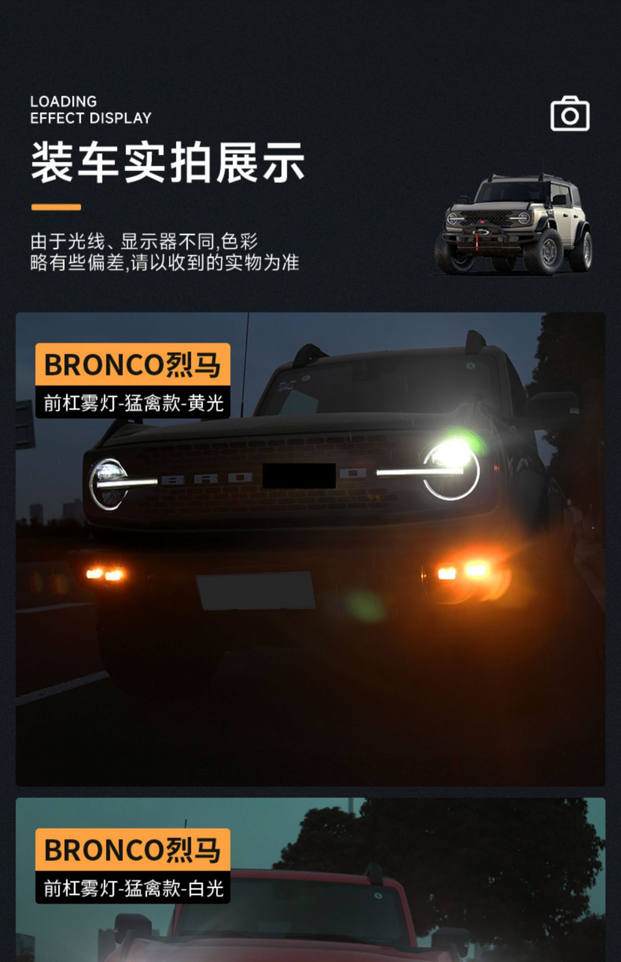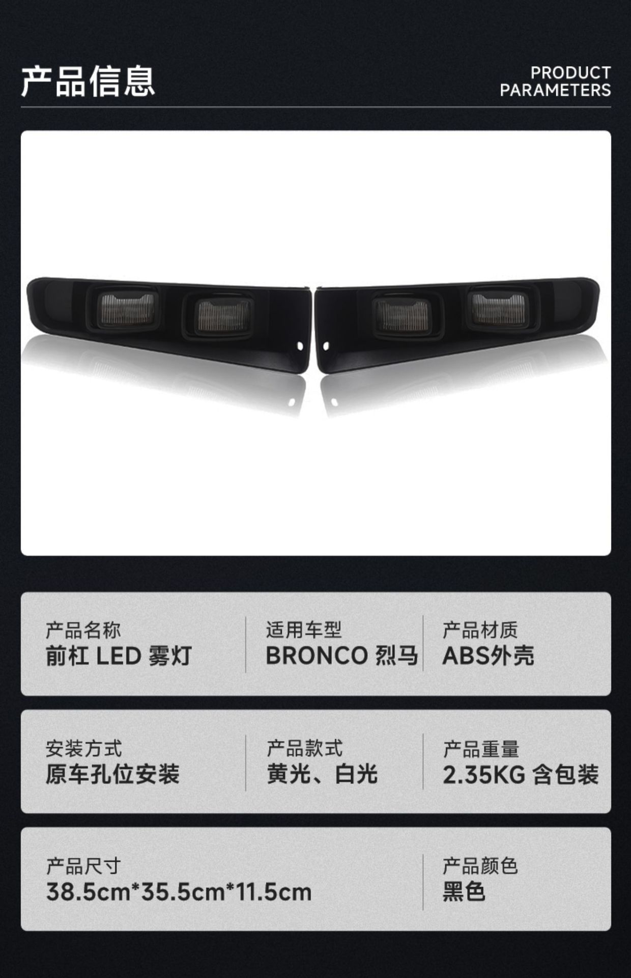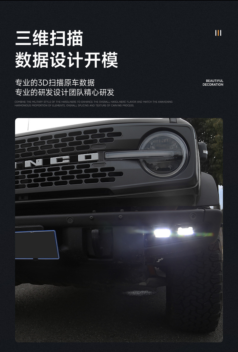 Tags: automotive warning lights, Bronco lighting upgrade, daytime running light kit, front bumper fog lights, LED DRL assembly, raptor style lights, turn signal lamps