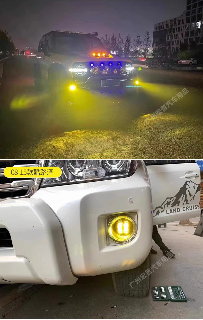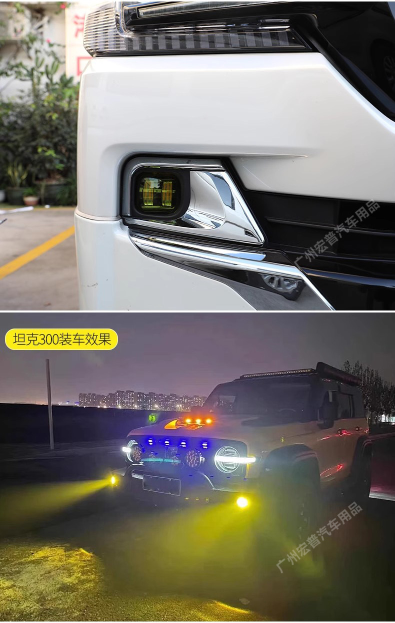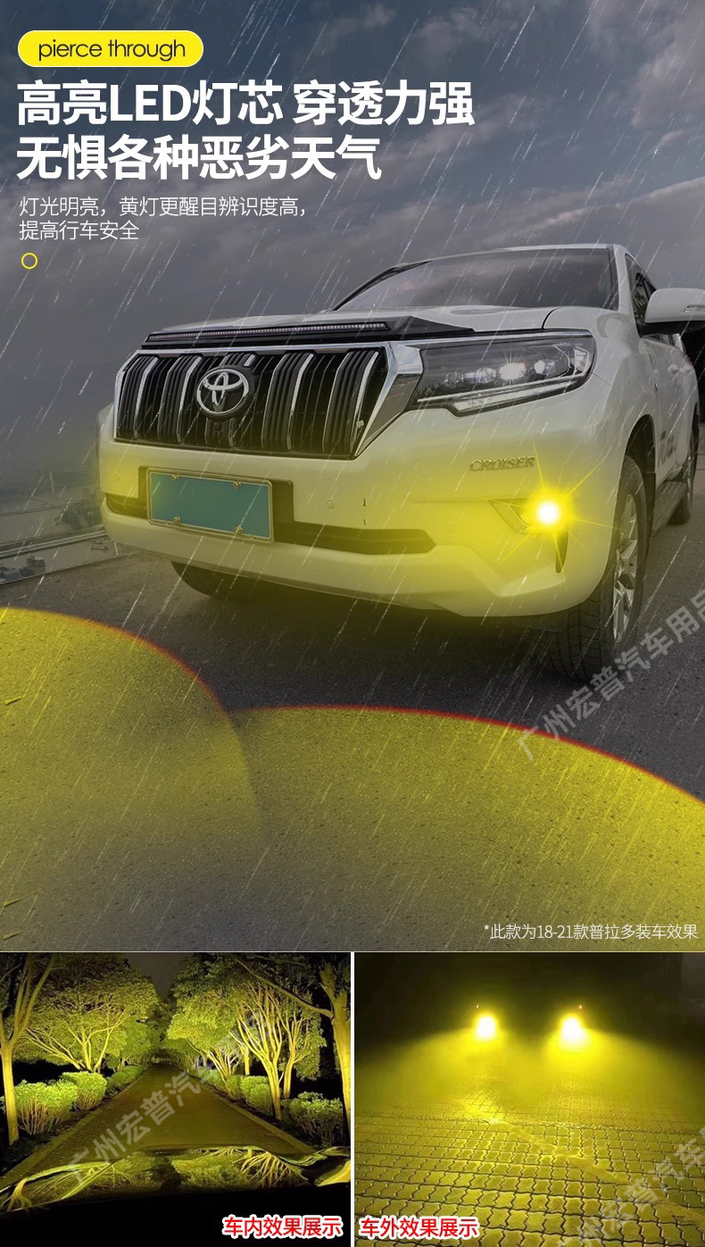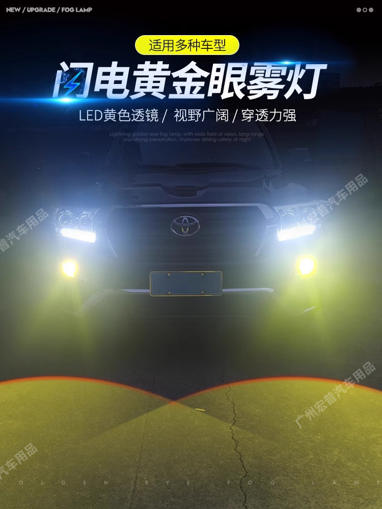 Upgrade your vehicle with high-performance golden yellow LED fog light assemblies. Enhanced visibility for off-road SUVs in heavy fog, rain, or snow conditions.