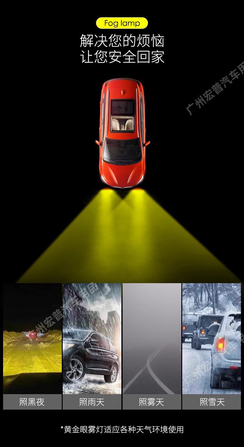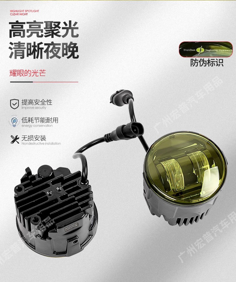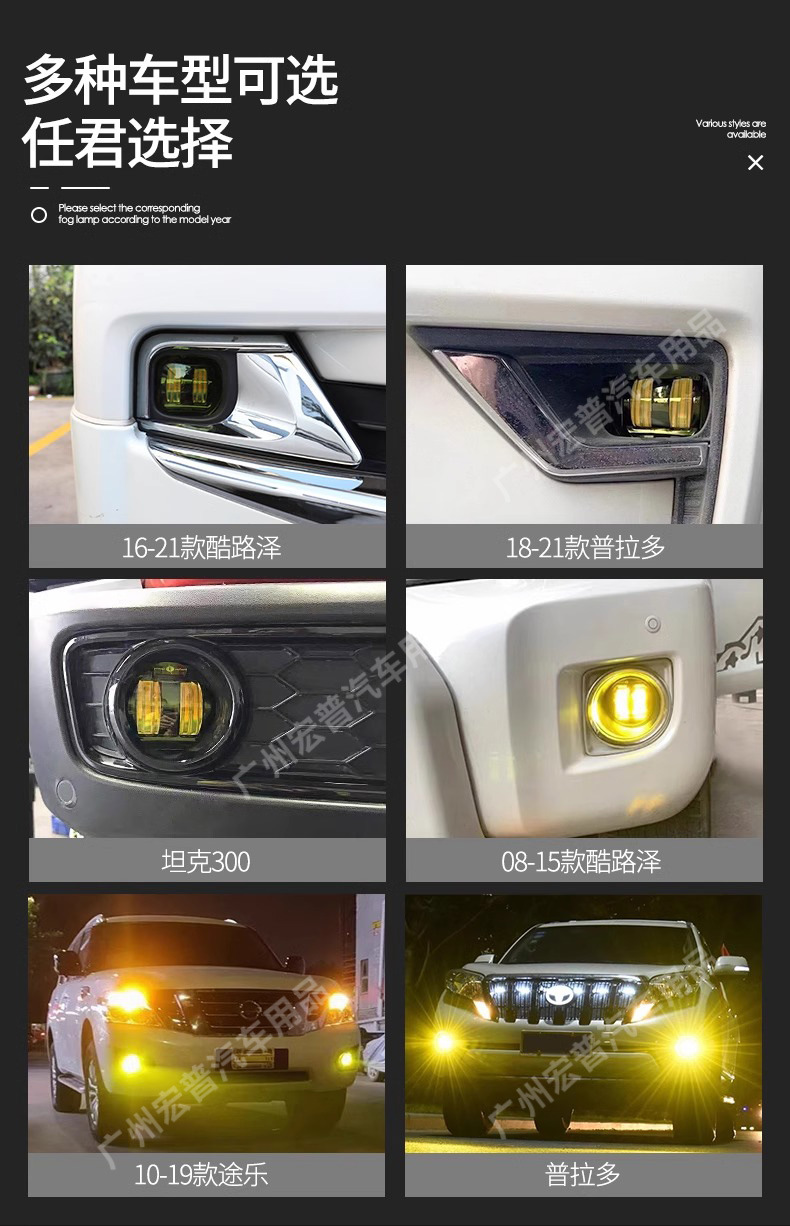 Upgrade your vehicle with high-performance golden yellow LED fog light assemblies. Enhanced visibility for off-road SUVs in heavy fog, rain, or snow conditions.