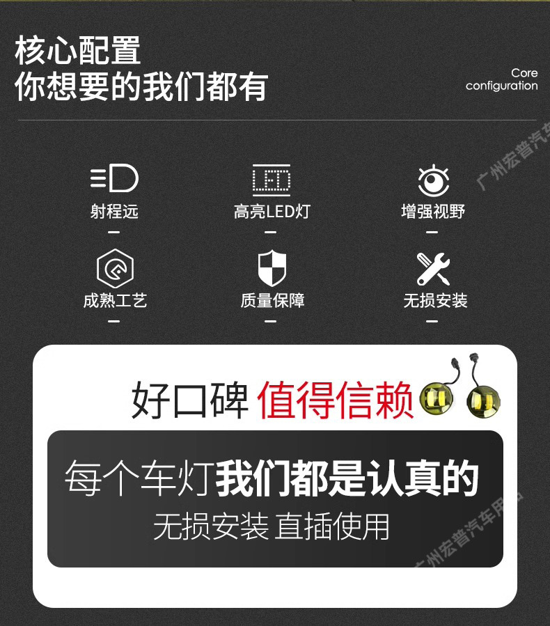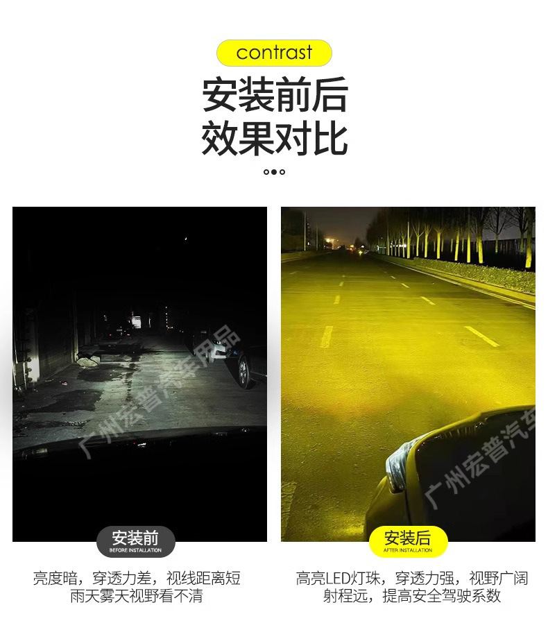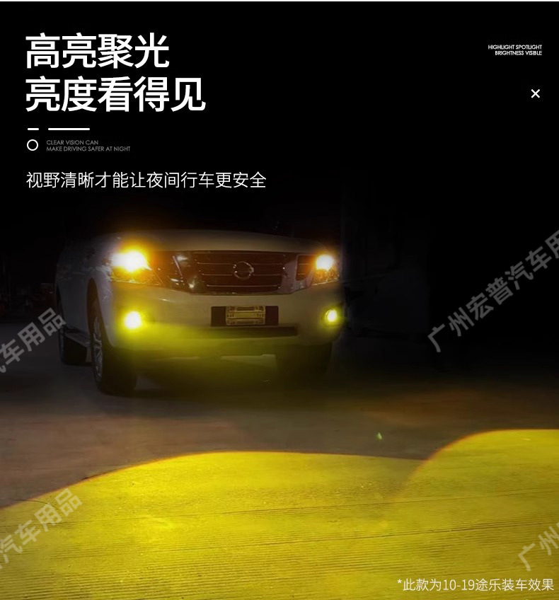• Distinctive golden yellow light output enhances visibility and reduces glare for safer driving.