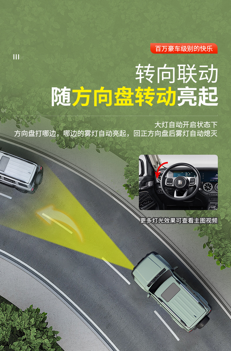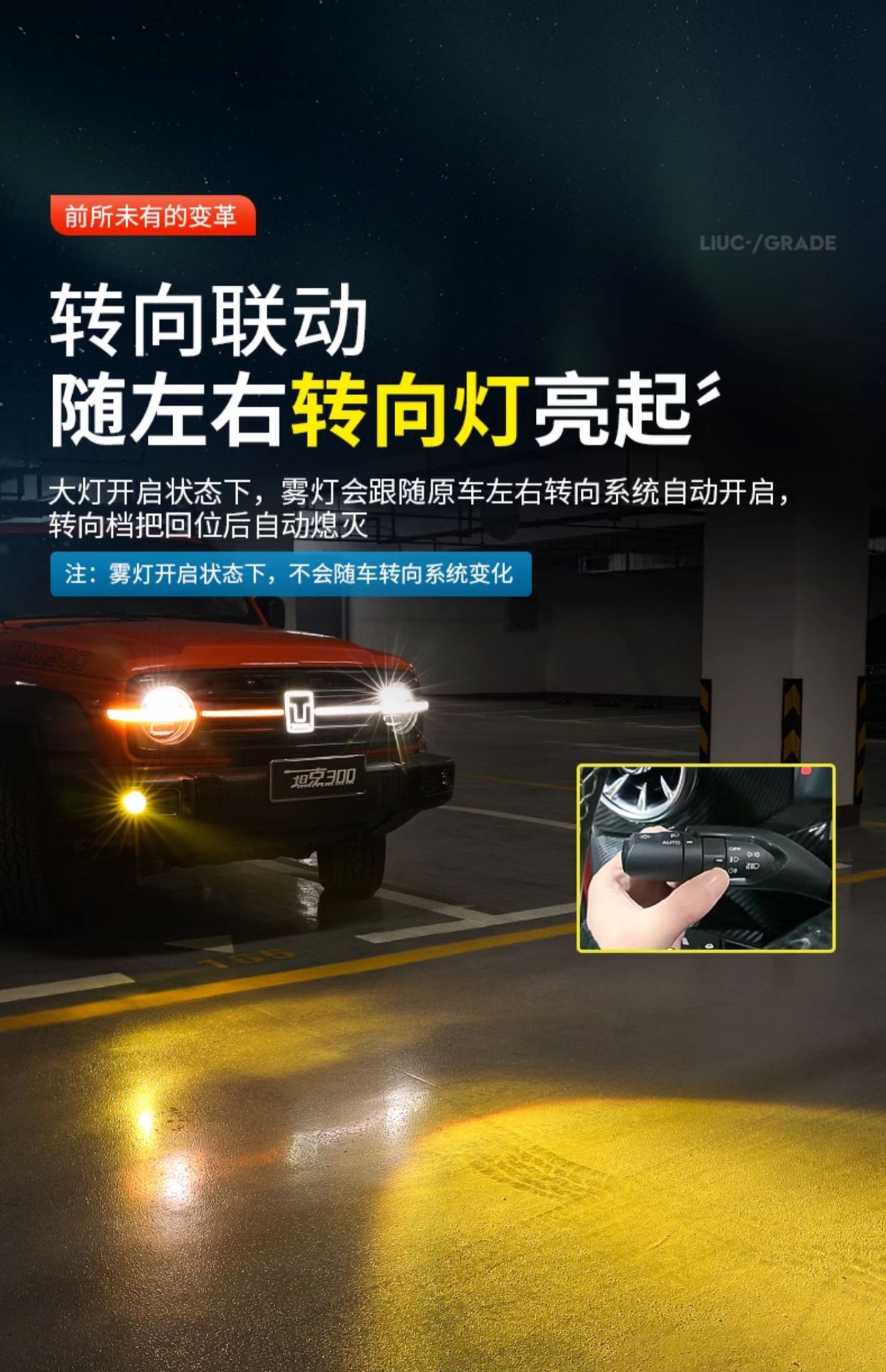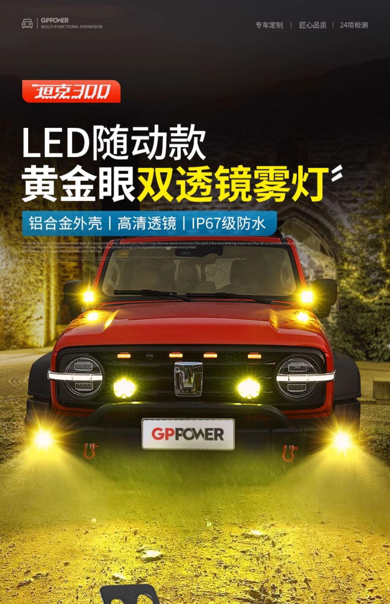LED Fog Light Assembly with Dual Lens and Sequential Turn Signal for Tank 300 Grille Accent Lighting