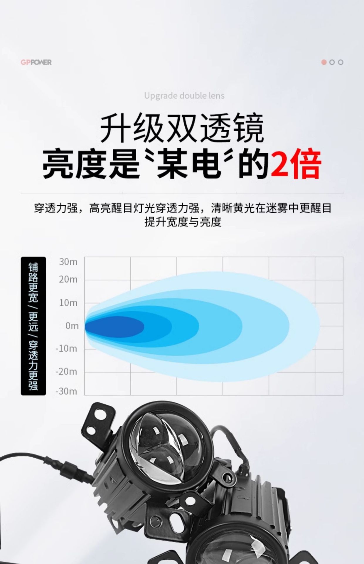 - Integrated dual lens LED technology provides high brightness and superior penetration in foggy or rainy conditions.