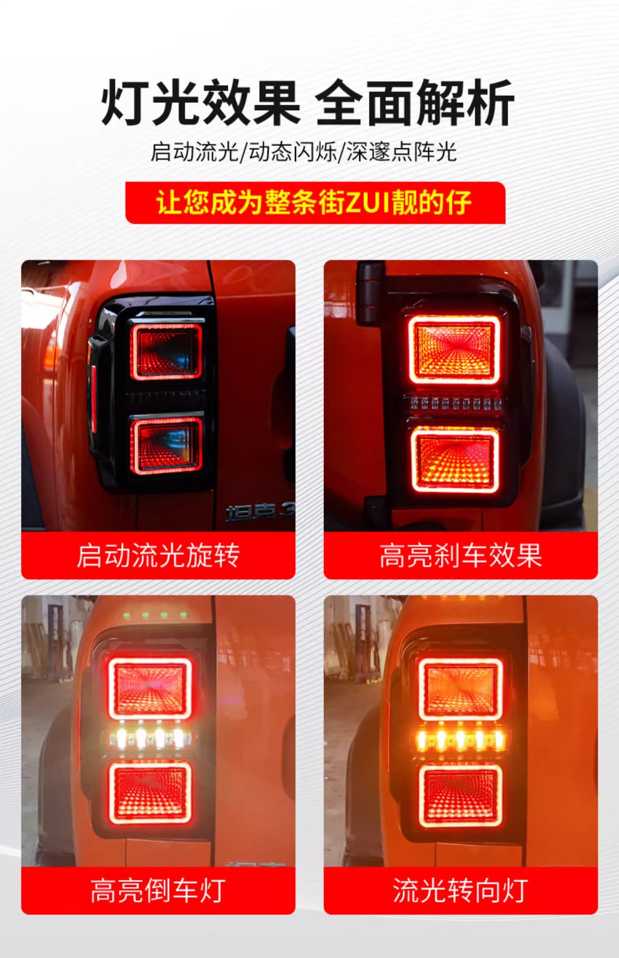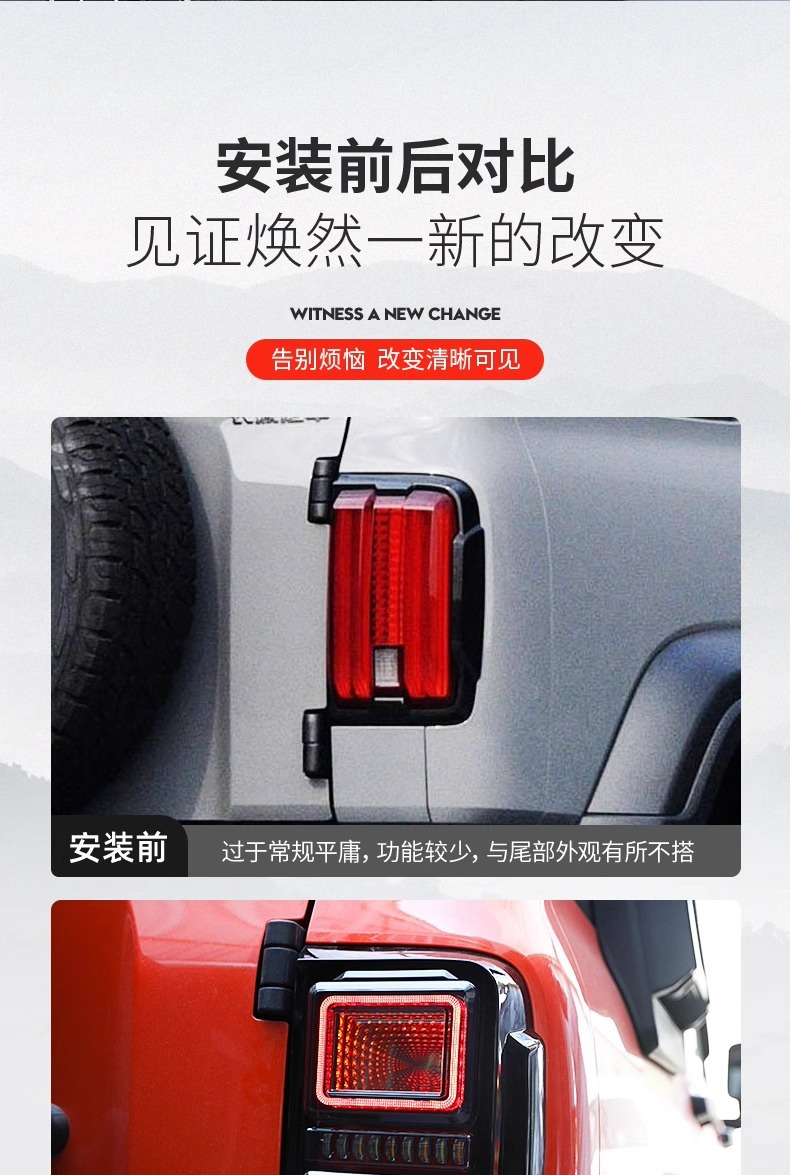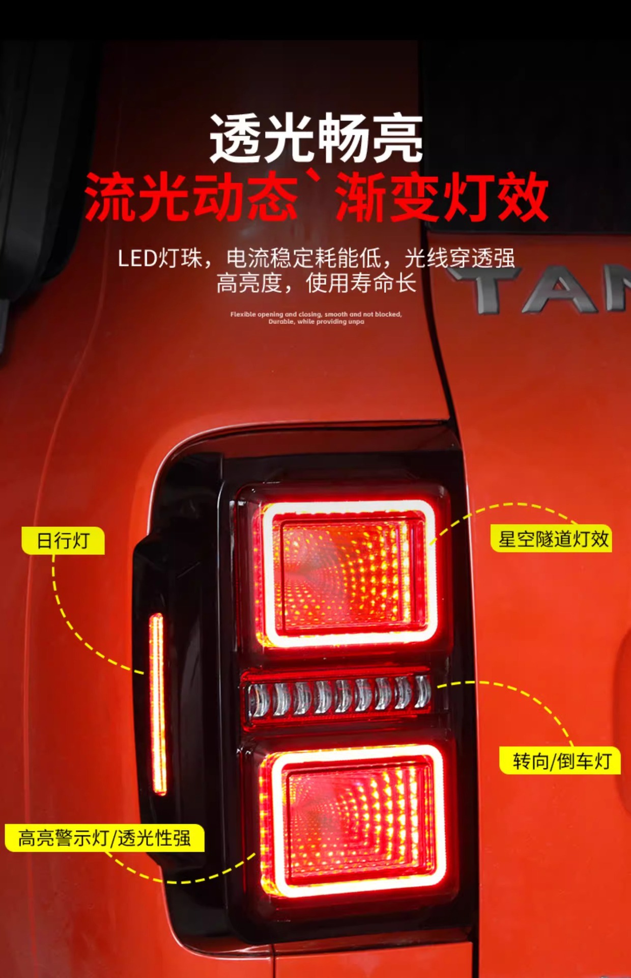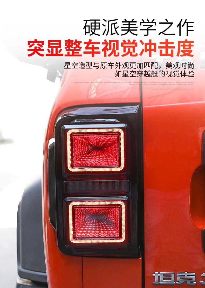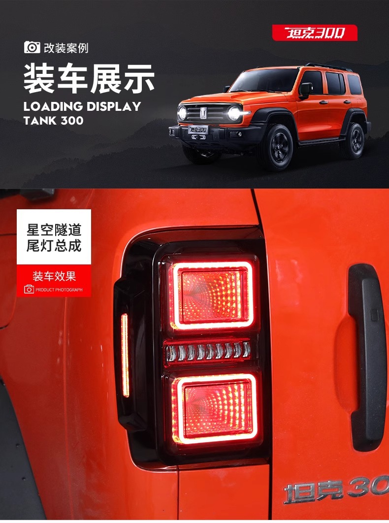 Tags: automotive brake lights, car exterior lighting, LED tail lights, Rear Lamp Assembly, sequential turn signal, starry sky tunnel light, Tank 300 accessories