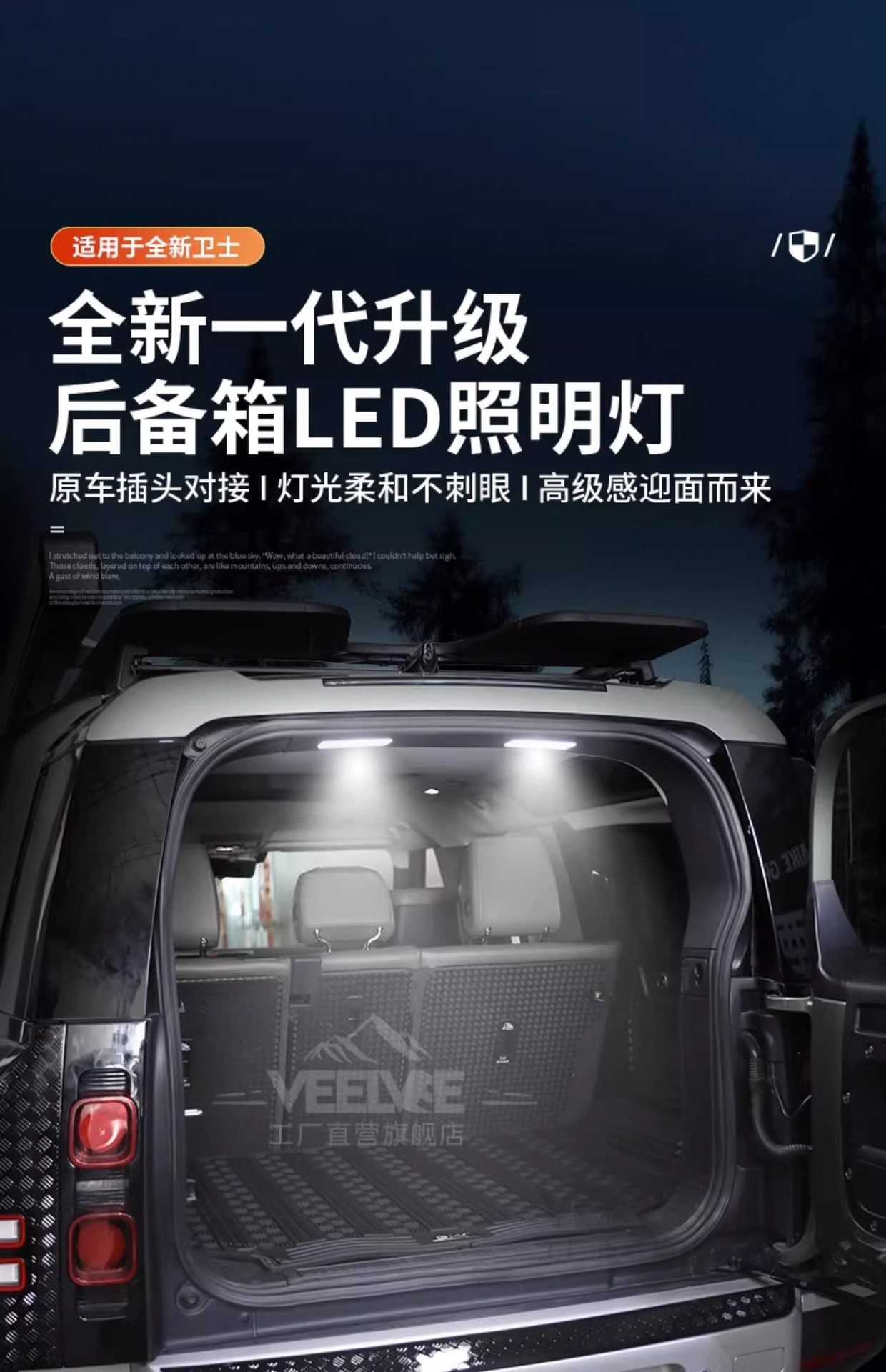 LED Rear Trunk Atmosphere Light Tailgate Interior Reading Lamp for Land Rover Defender