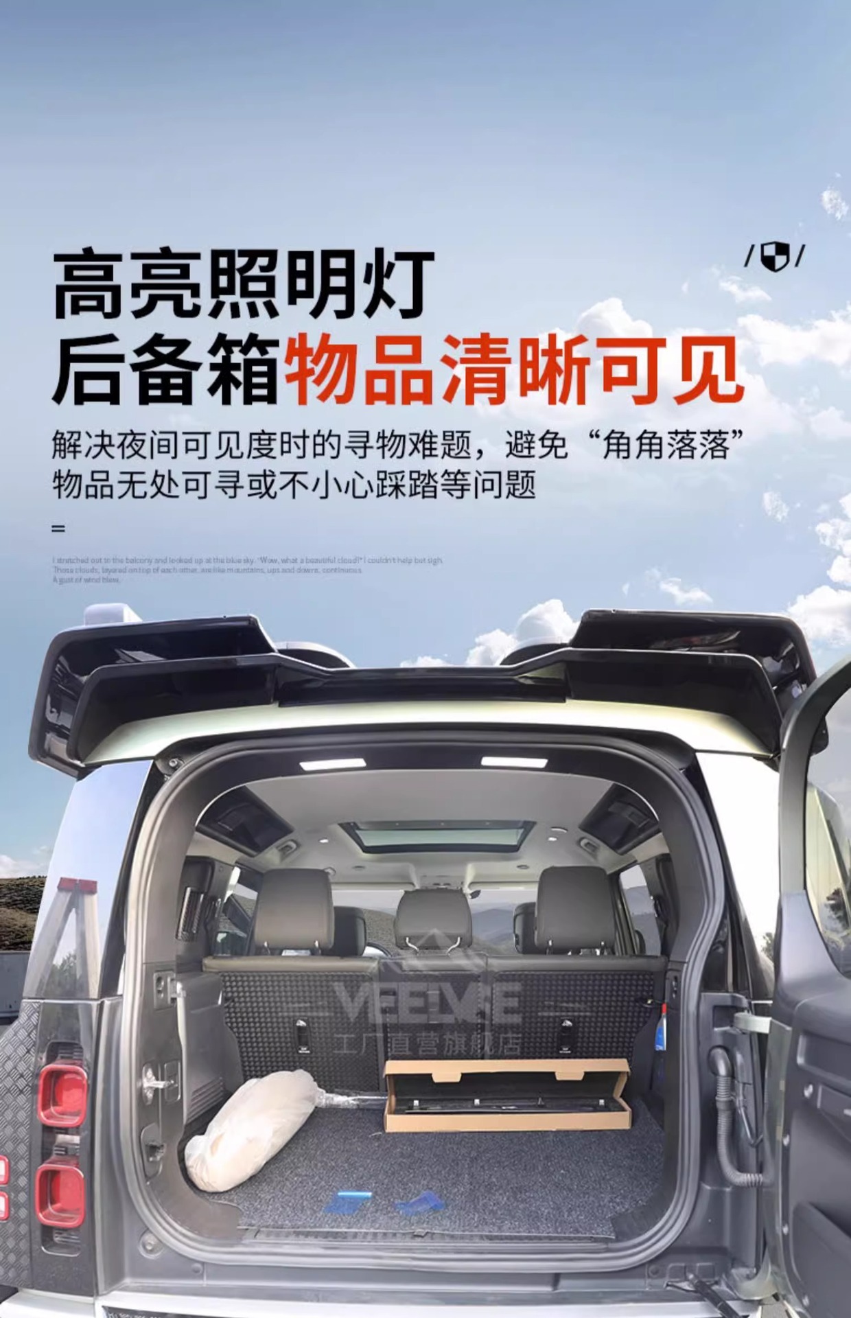 • Integrated design enhances vehicle interior aesthetics while improving visibility during nighttime loading.