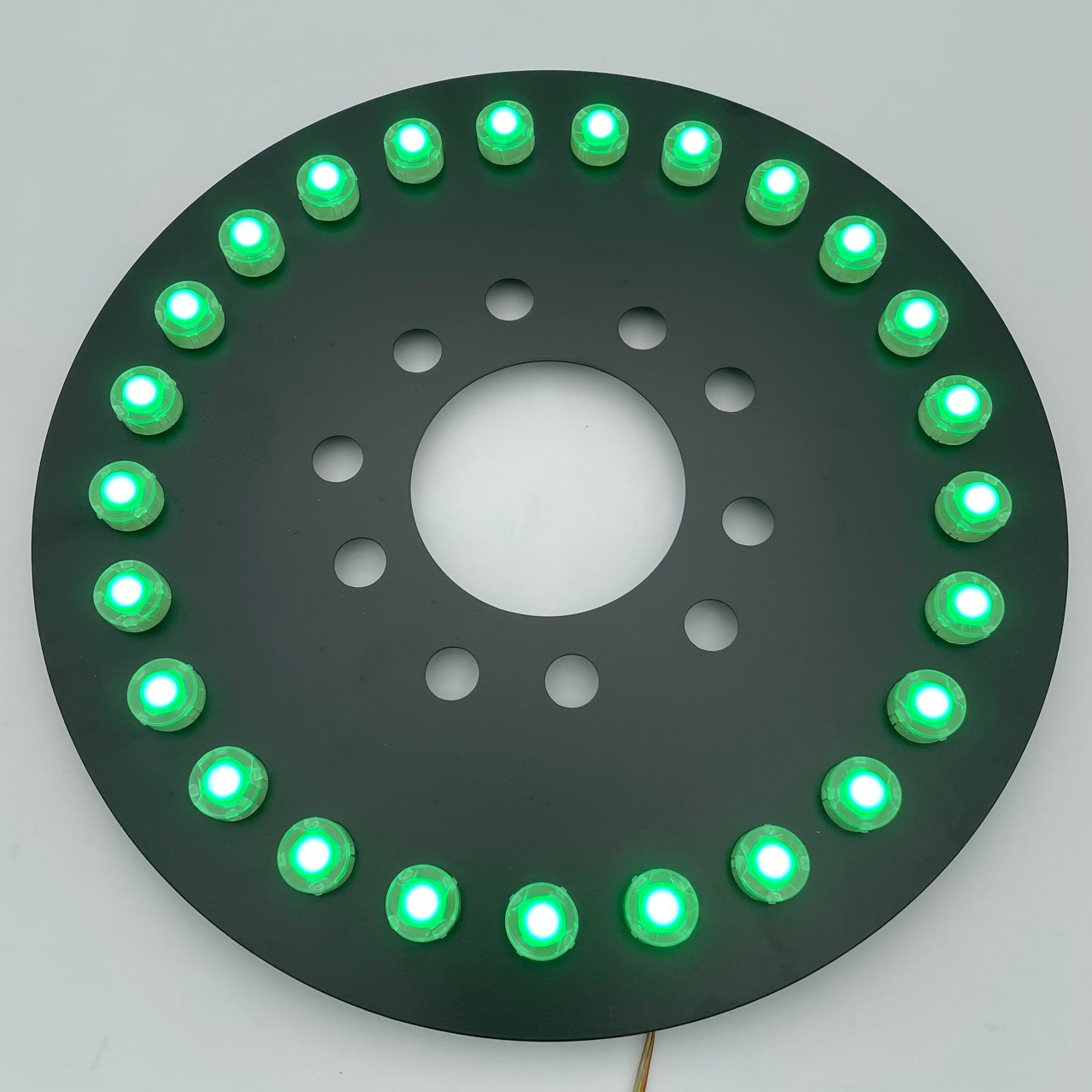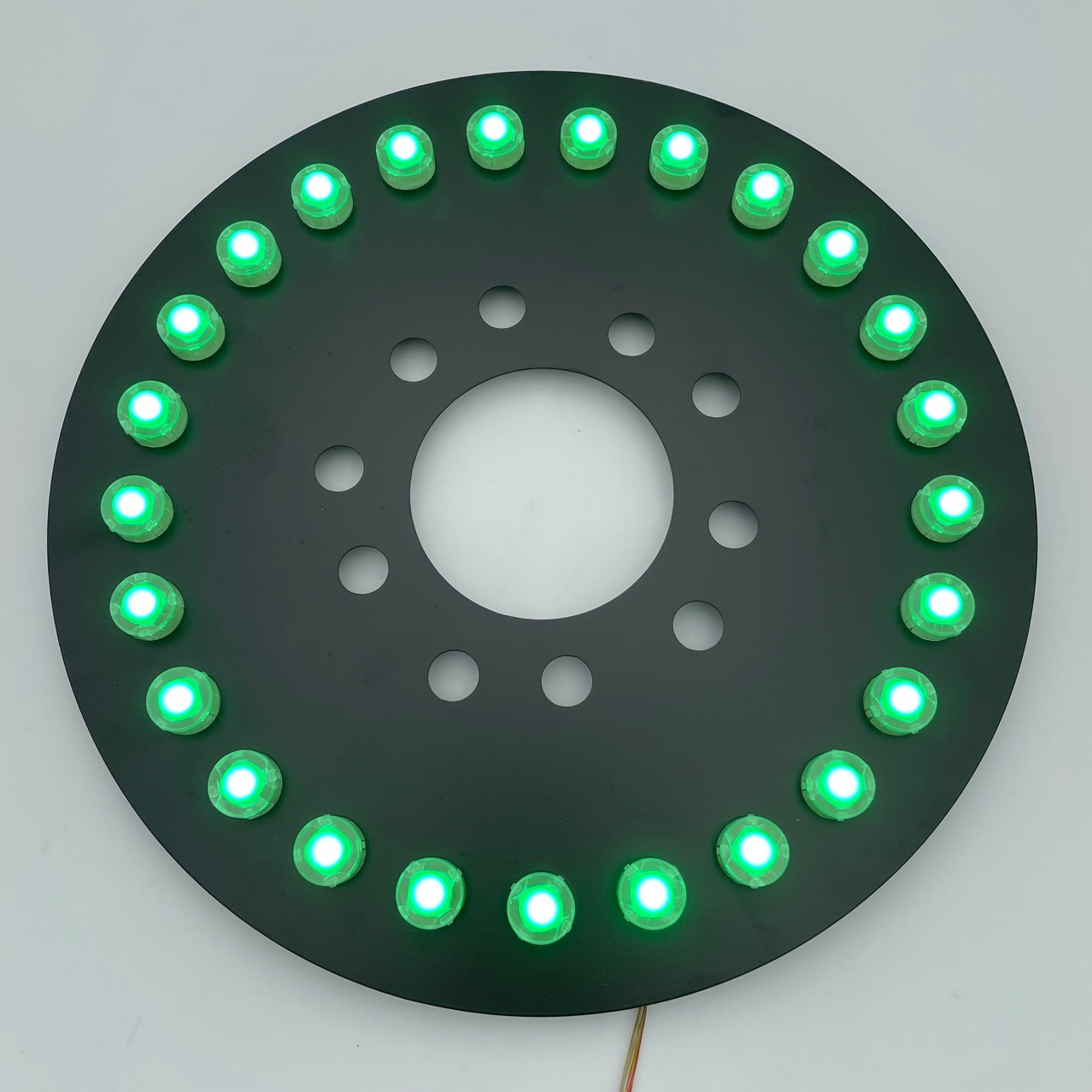 A: In most jurisdictions, primary brake lights must be red. This green LED ring is intended as an auxiliary accent or off-road light. Check your local DOT regulations regarding secondary colored lighting.