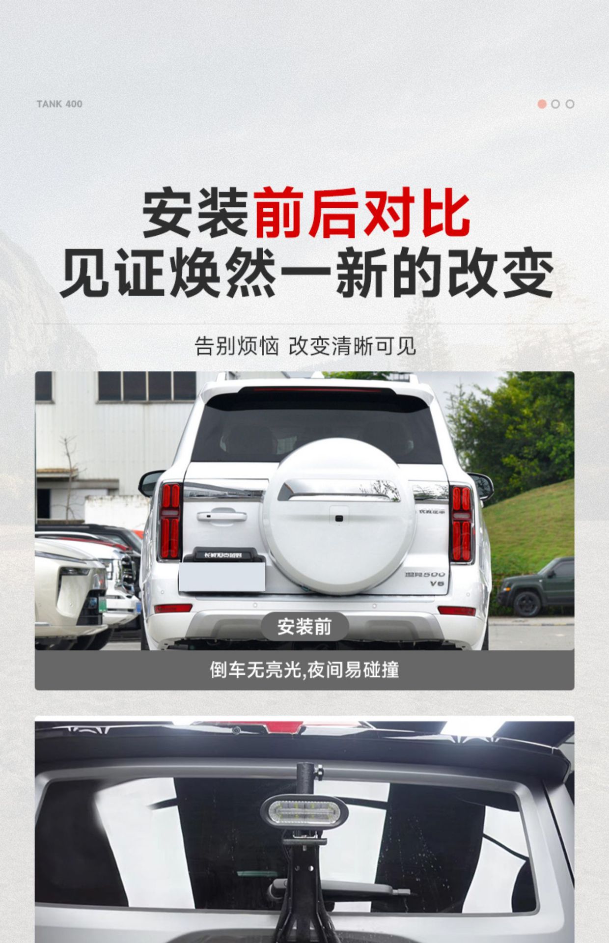 Tags: camping signal light, chasing reverse light, high mount brake light, off-road led light, rear auxiliary lighting, spare tire light, Tank 400 accessories