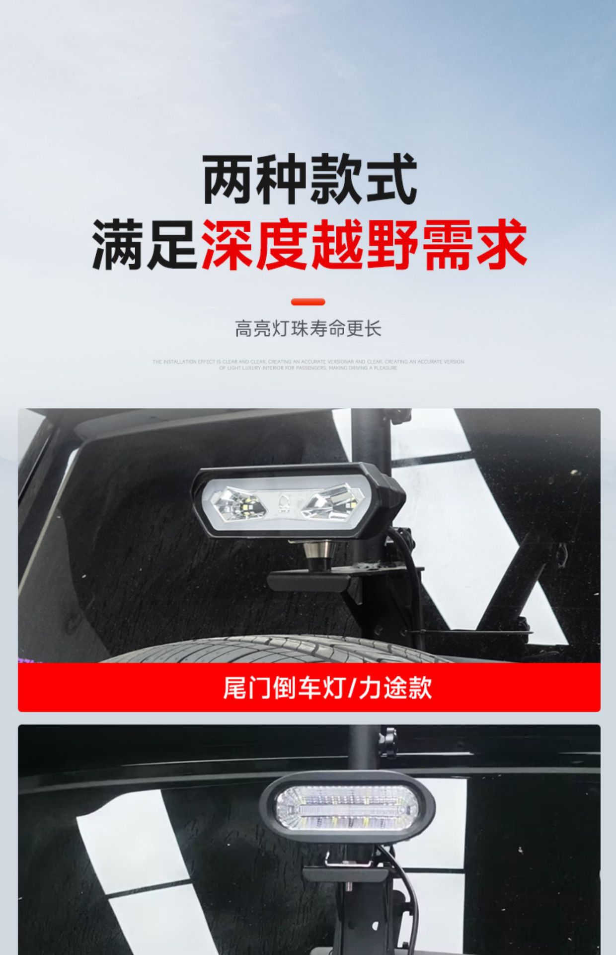 - Integrated LED technology provides high brightness and low power consumption for off-road and camping visibility.