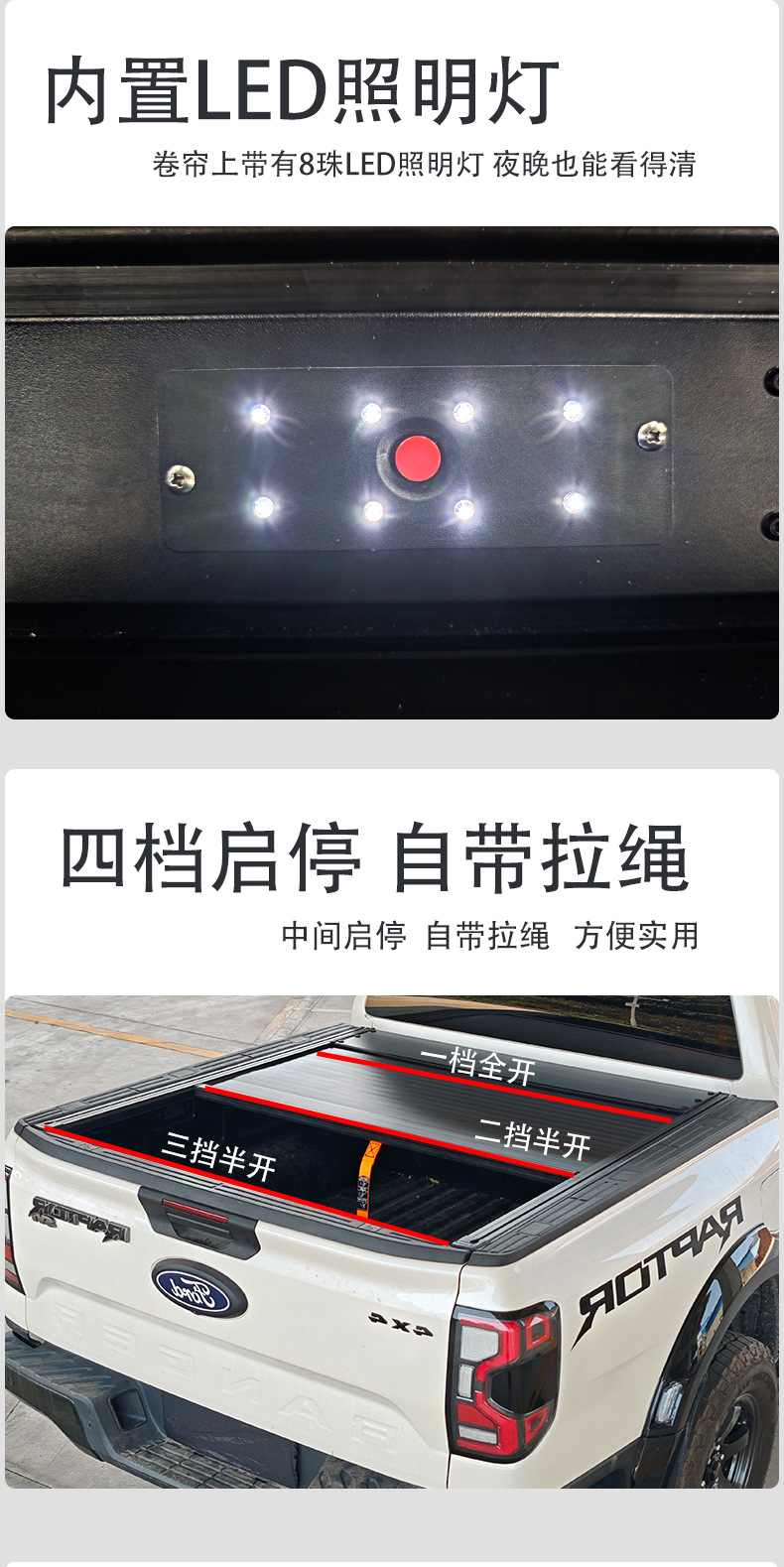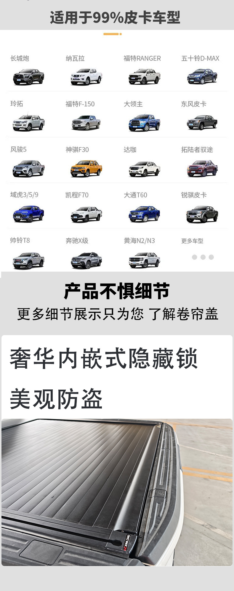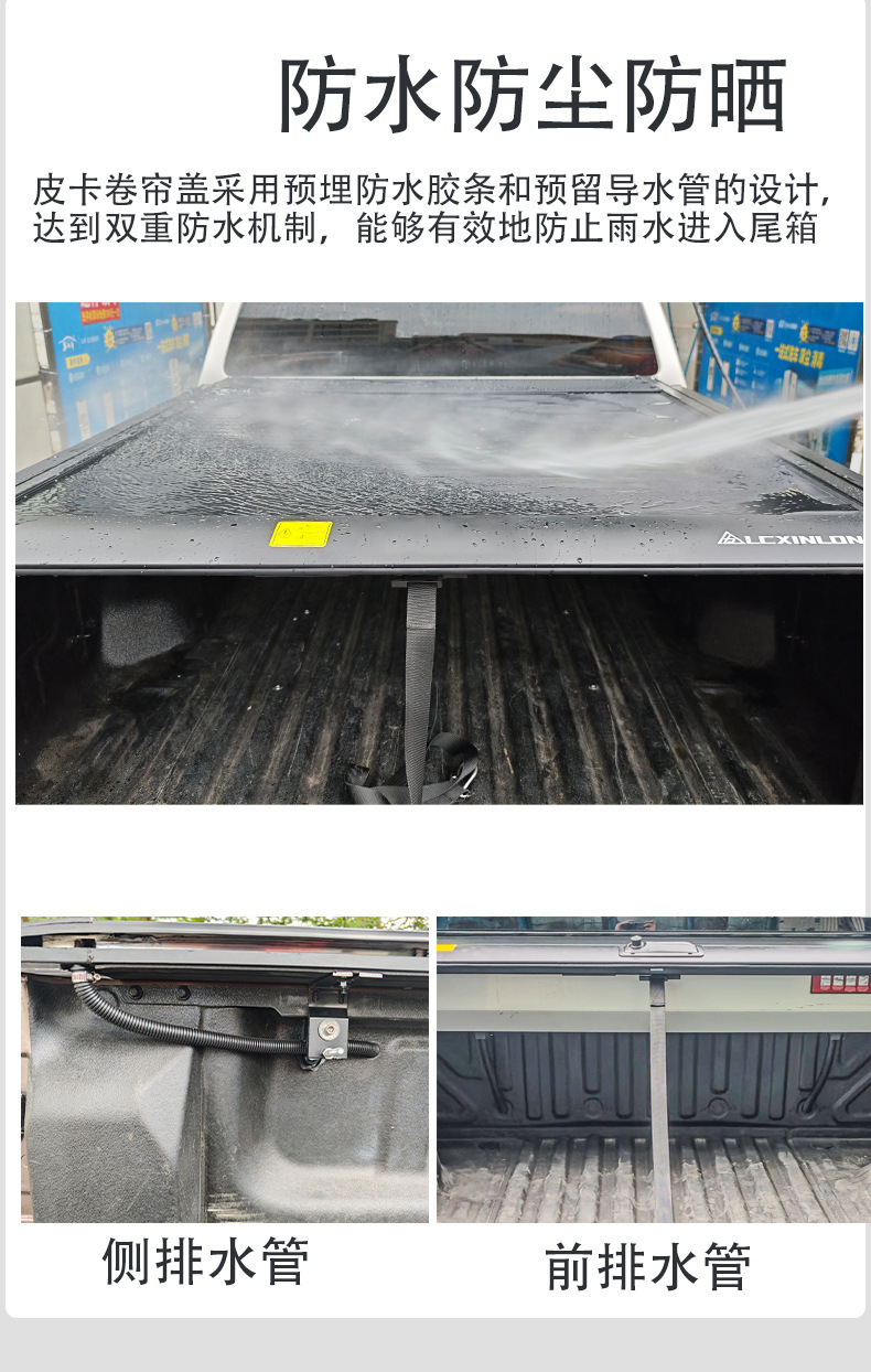 - Weather-resistant aluminum alloy slats protect the truck bed against rain, snow, dirt, and UV exposure.