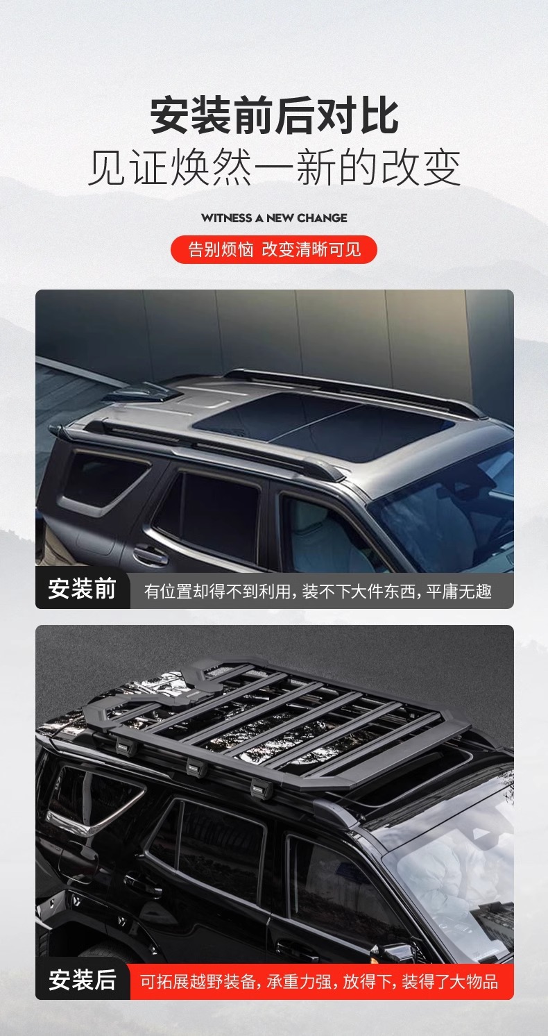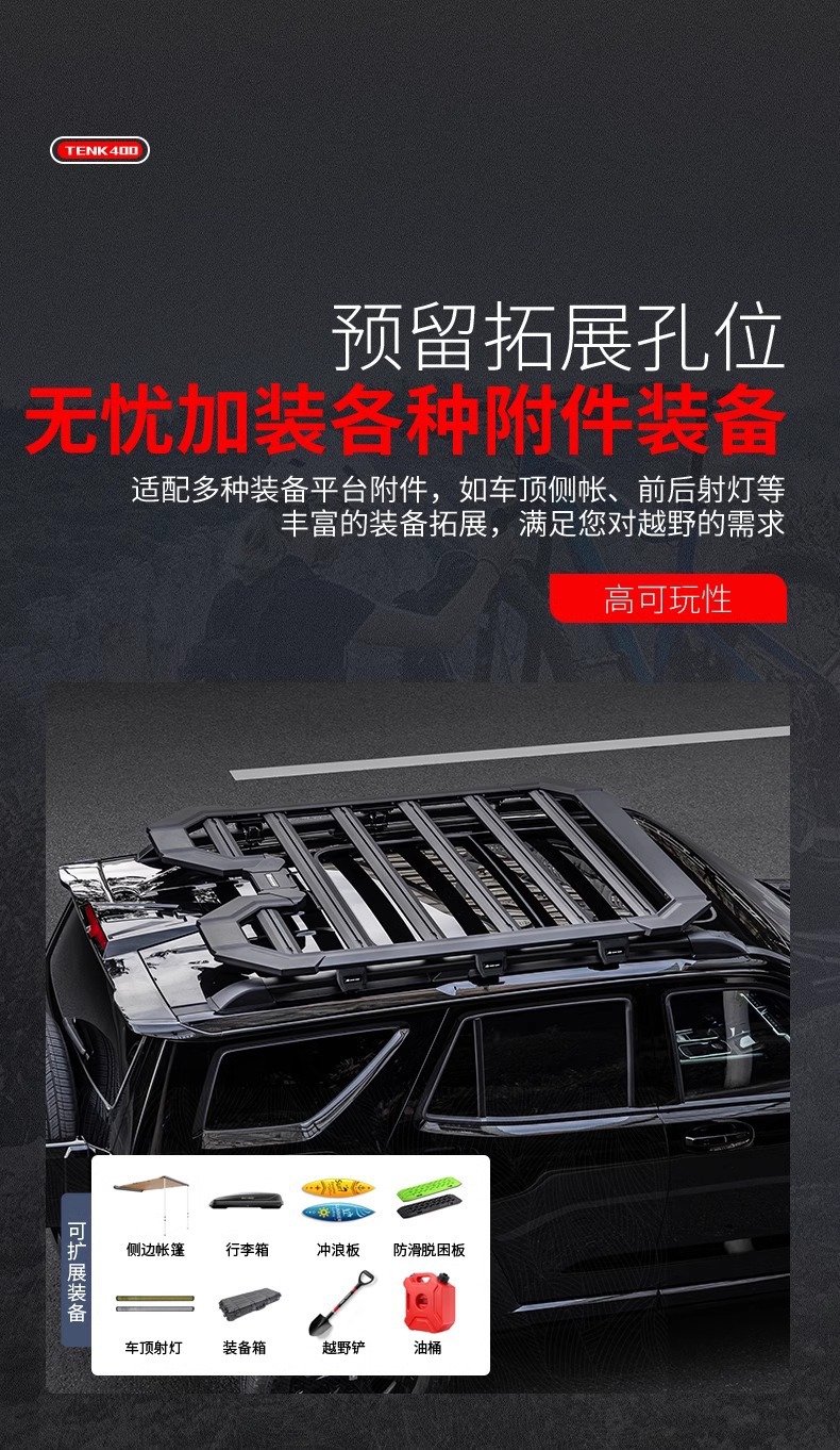 Tags: car exterior modification, heavy duty roof tray, off-road cargo carrier, roof luggage basket, roof rack platform, roof storage rack