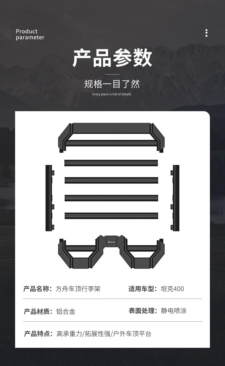 Low Profile Ark Roof Rack Platform for Tank 400 Hi4-T Off-Road Modification Luggage Carrier