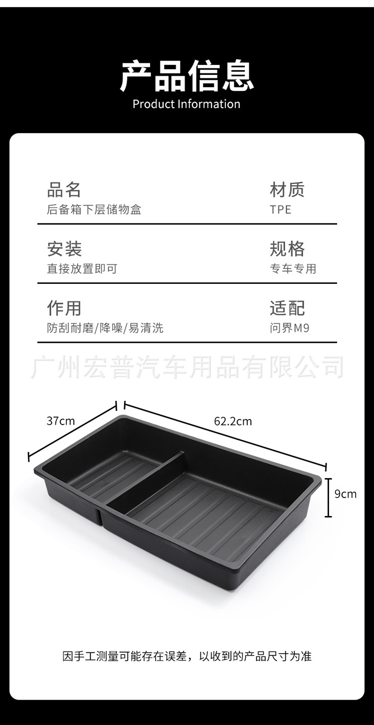 • Customized fit specifically designed for the lower trunk compartment of the AITO M9 model.