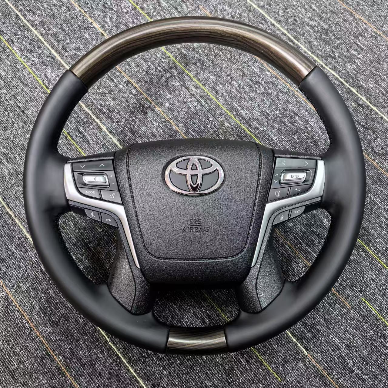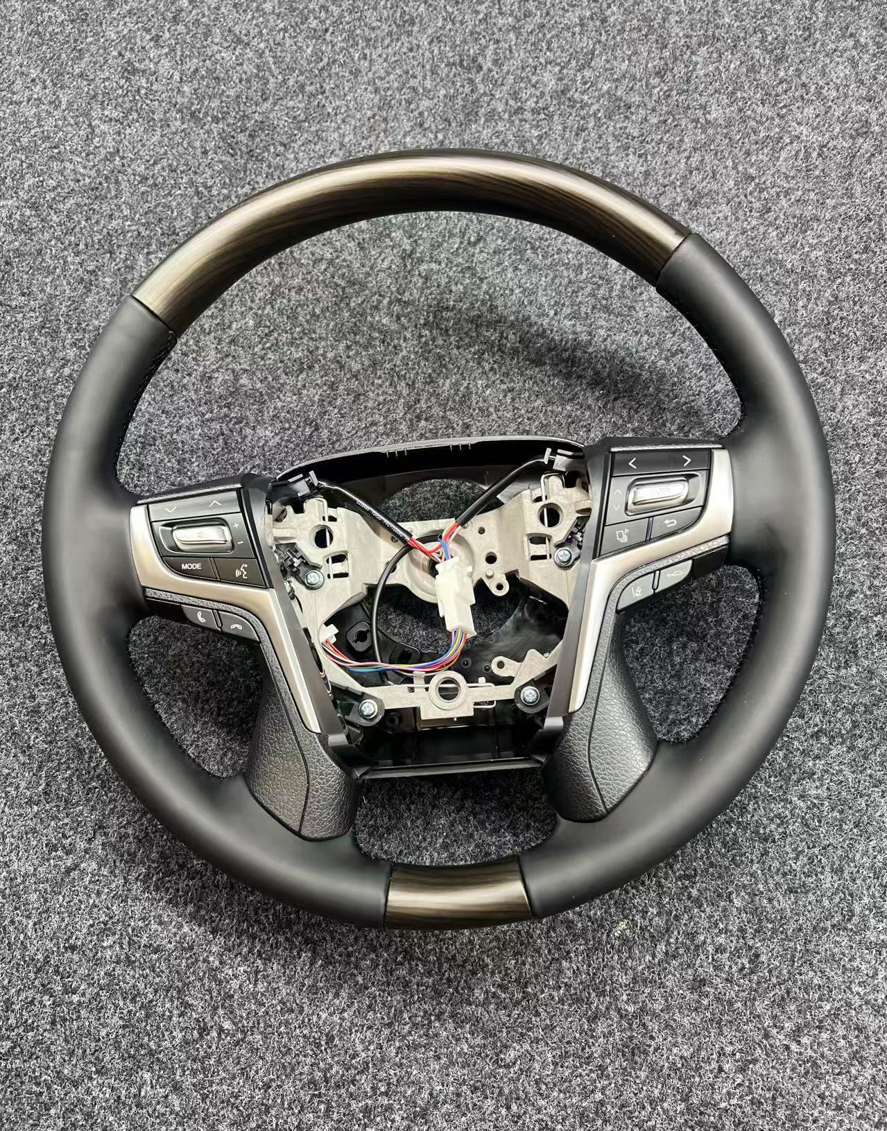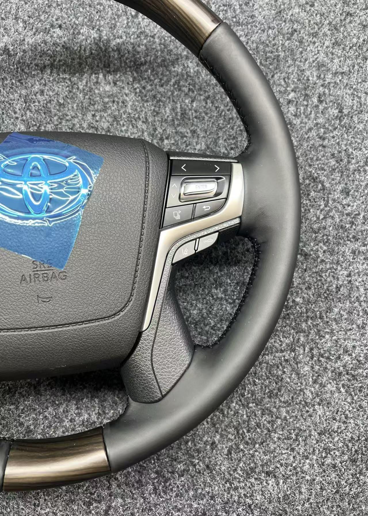 Upgrade your driving experience with this luxury wood and leather steering wheel assembly for Toyota Land Cruiser and Prado. Durable, elegant, and ergonomic.