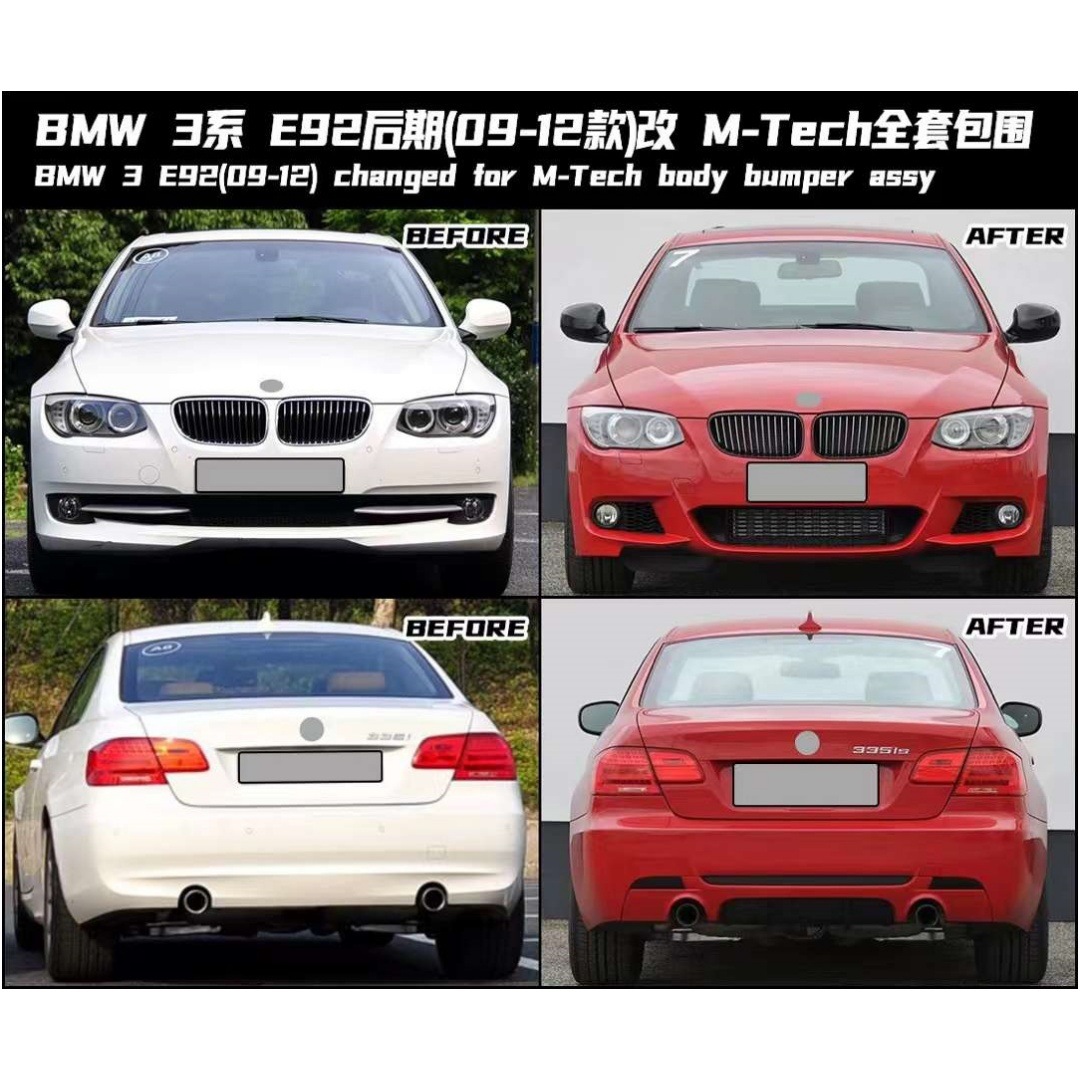 Tags: 3 series aerodynamic parts, automotive exterior styling, BMW E92 body kit, E93 M-Tech bumper, LCI facelift conversion, replacement car bumpers