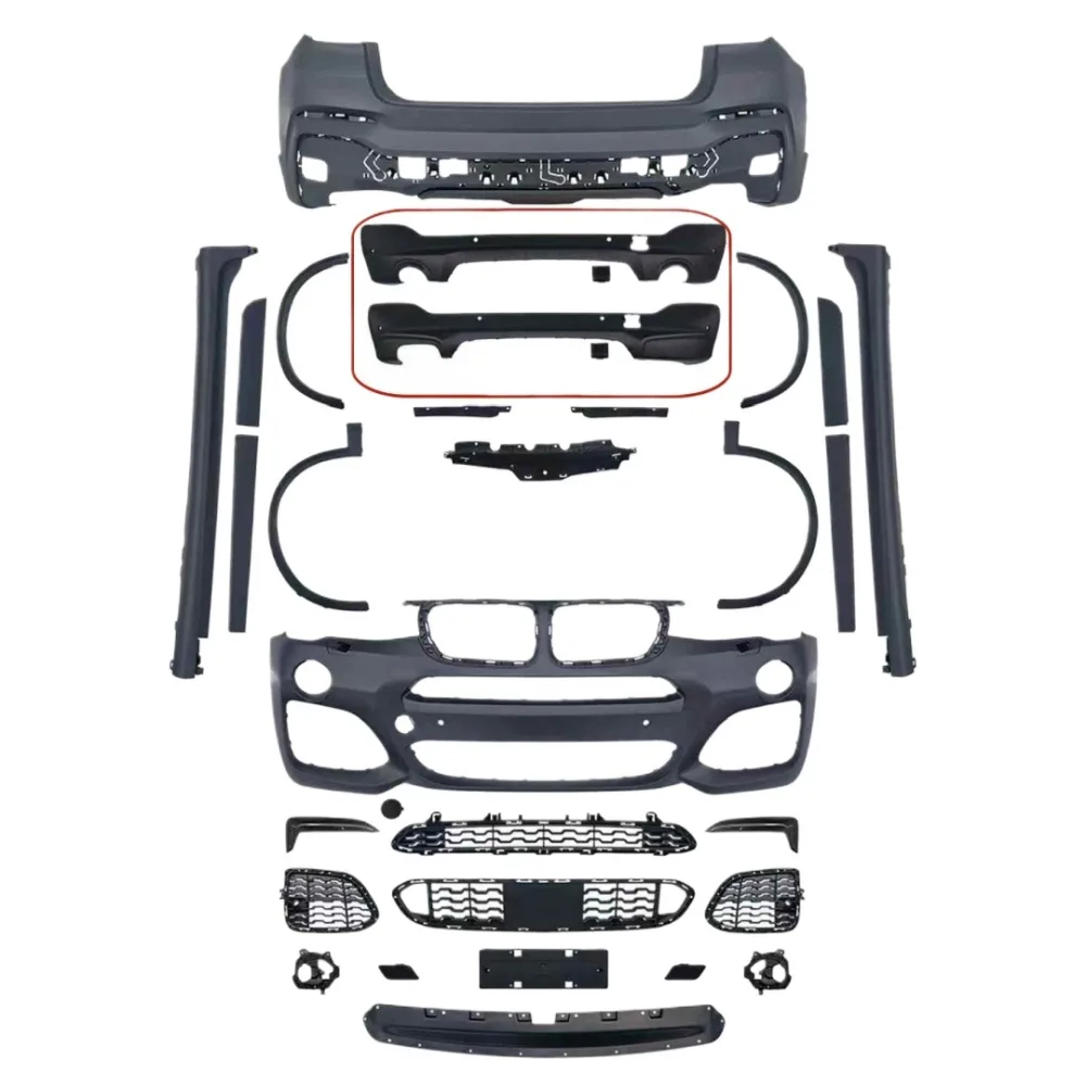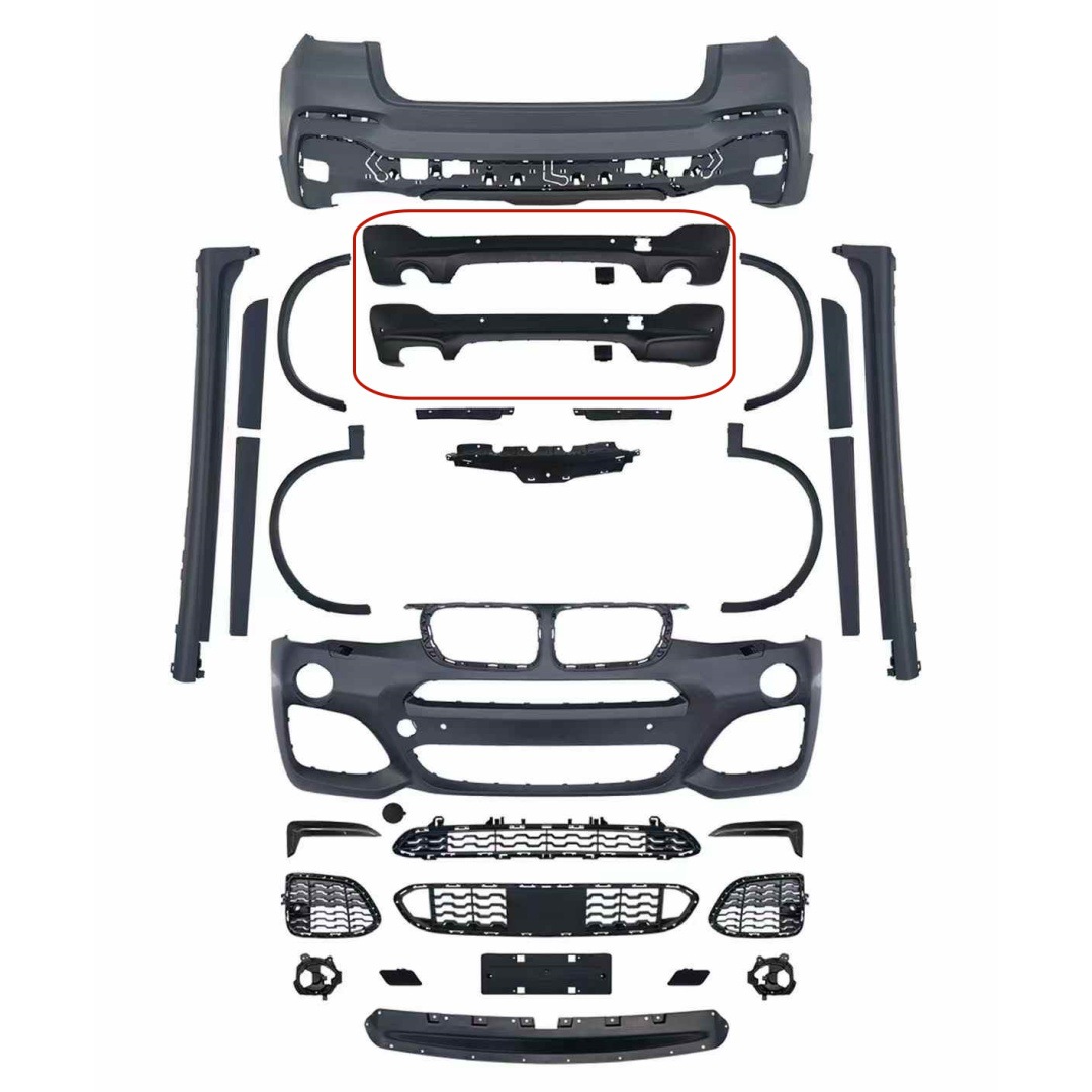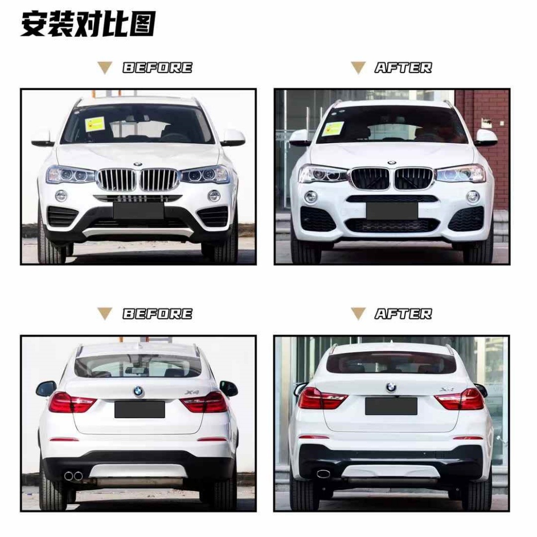 Tags: automotive body styling, BMW X4 body kit, car aerodynamic parts, exterior modification set, F26 M-TECH bumper, Front Rear Bumper Kit