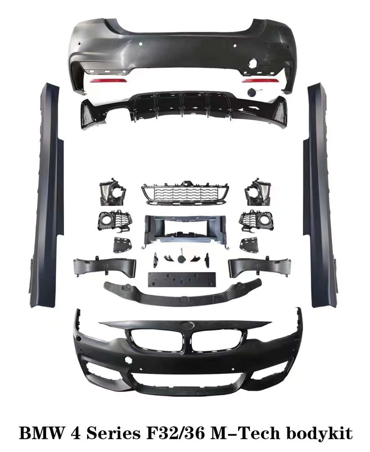 Tags: automotive body parts, BMW 4 series bumper, car exterior tuning, F32 body kit, M-TECH bumper kit, M4 style conversion, side skirts set