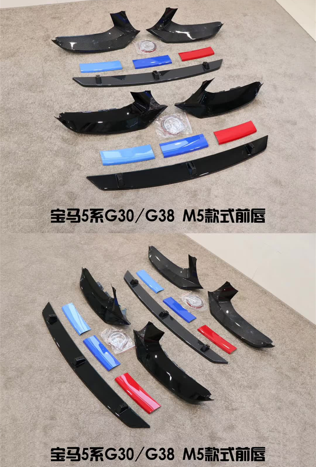 Tags: automotive exterior styling, car body kit, front bumper lip, front chin garnish, front splitter, G30 front lip, M5 style spoiler